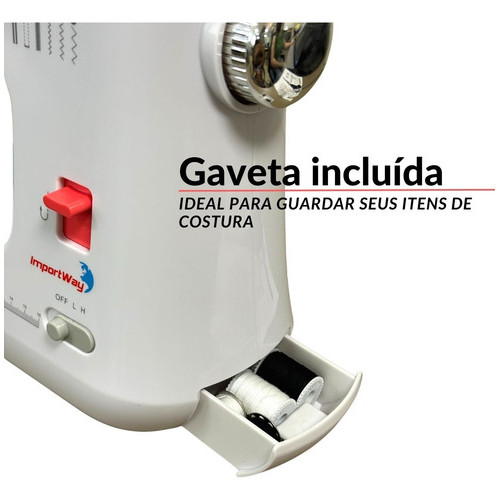 Máquina De Costura Agulha Dupla Bainha Importway Luz E Cortador Cor Branco 110V/220V