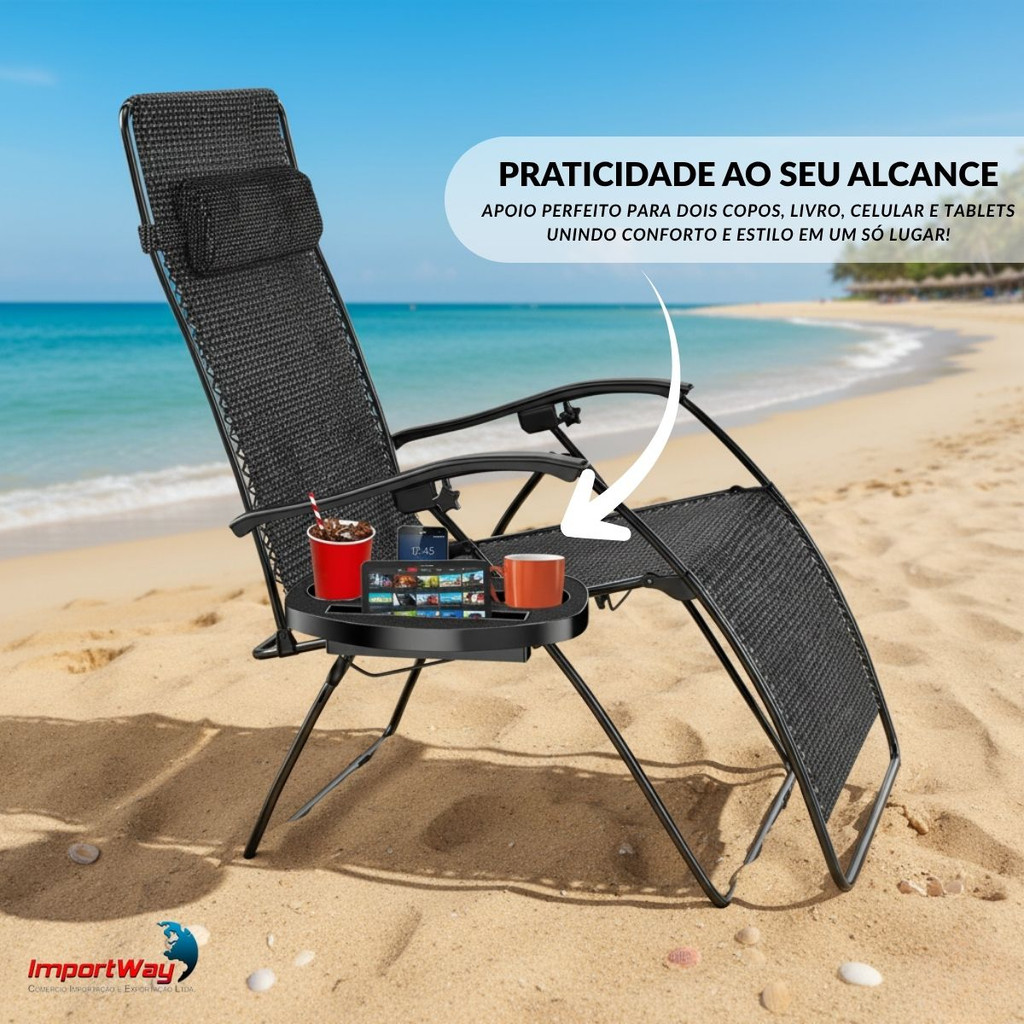 Mesa Portátil para Cadeira Importway com 2 Porta Copos Ideal para Praia e Camping