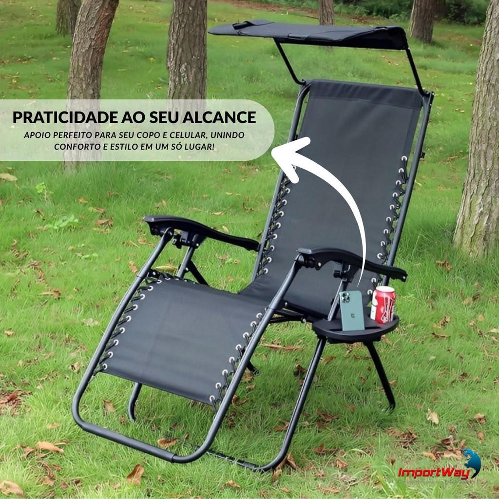 Mesa de Apoio Portátil Importway Preto para Cadeira com Suporte para 1 Copo Camping e Praia