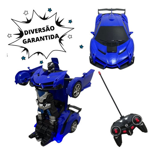 Carrinho de Controle Remoto 1:18 Vira Robô Importway Vermelho e Azul Infantil