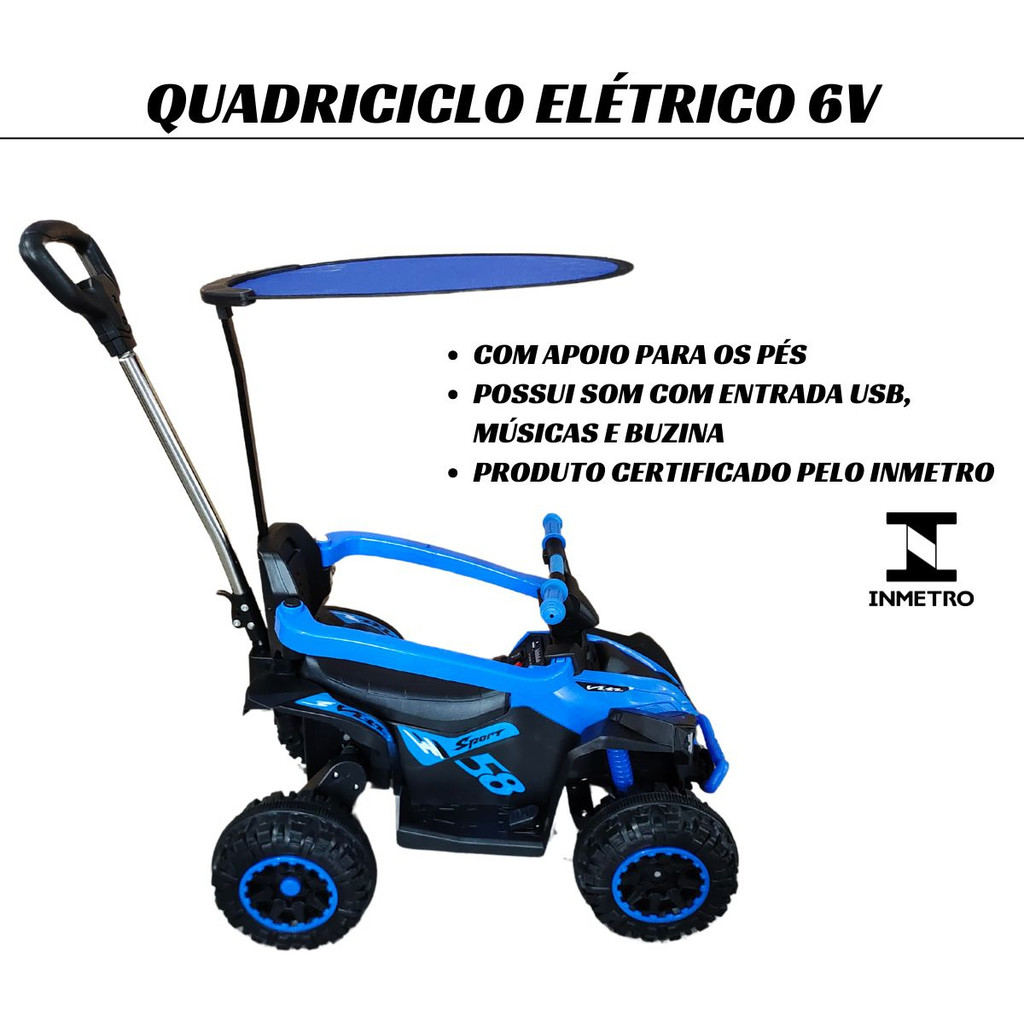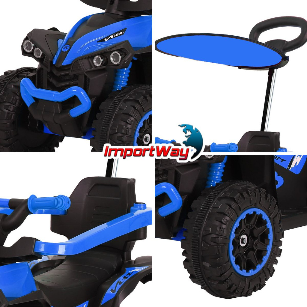 Quadriciclo 6V Elétrico Infantil Com Empurrador Com Teto Cobertura Luz Som Importway
