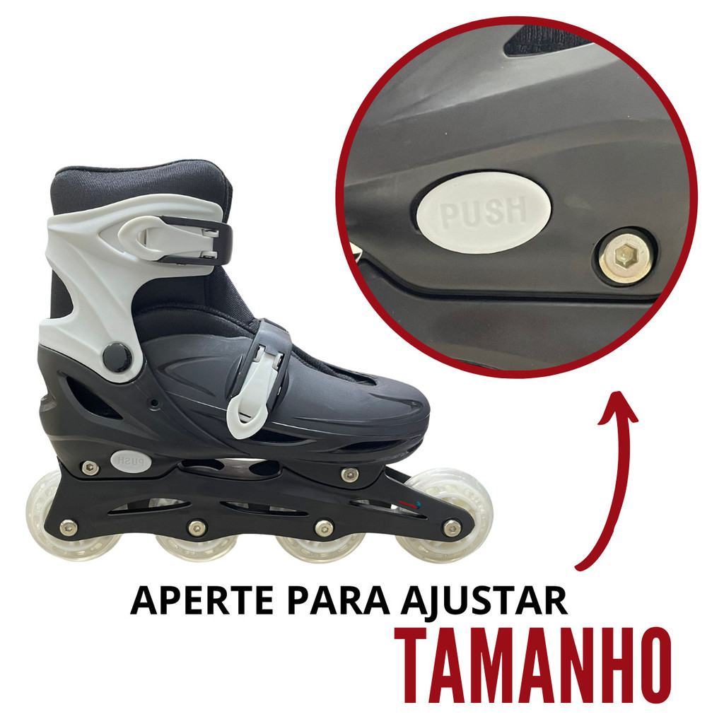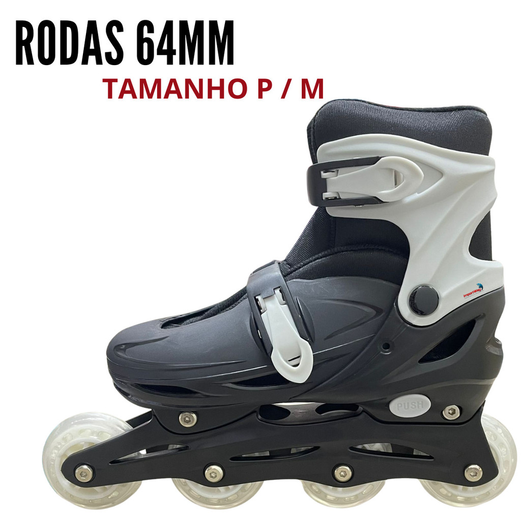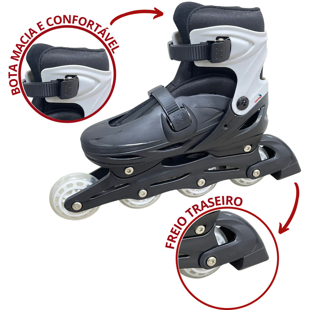 Patins Roller Inline Ajustável Preto Com Tamanho Ajustavel 35 a 38 Importway