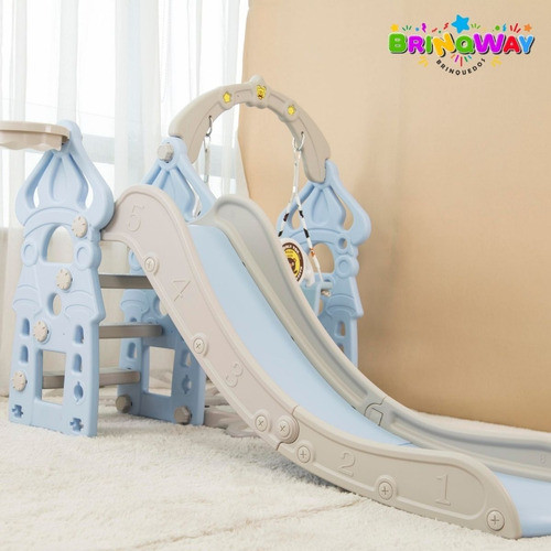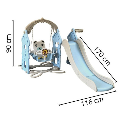 Playground Infantil 3 Em 1 Escorregador Balanço Cesta Urso Azul Importway