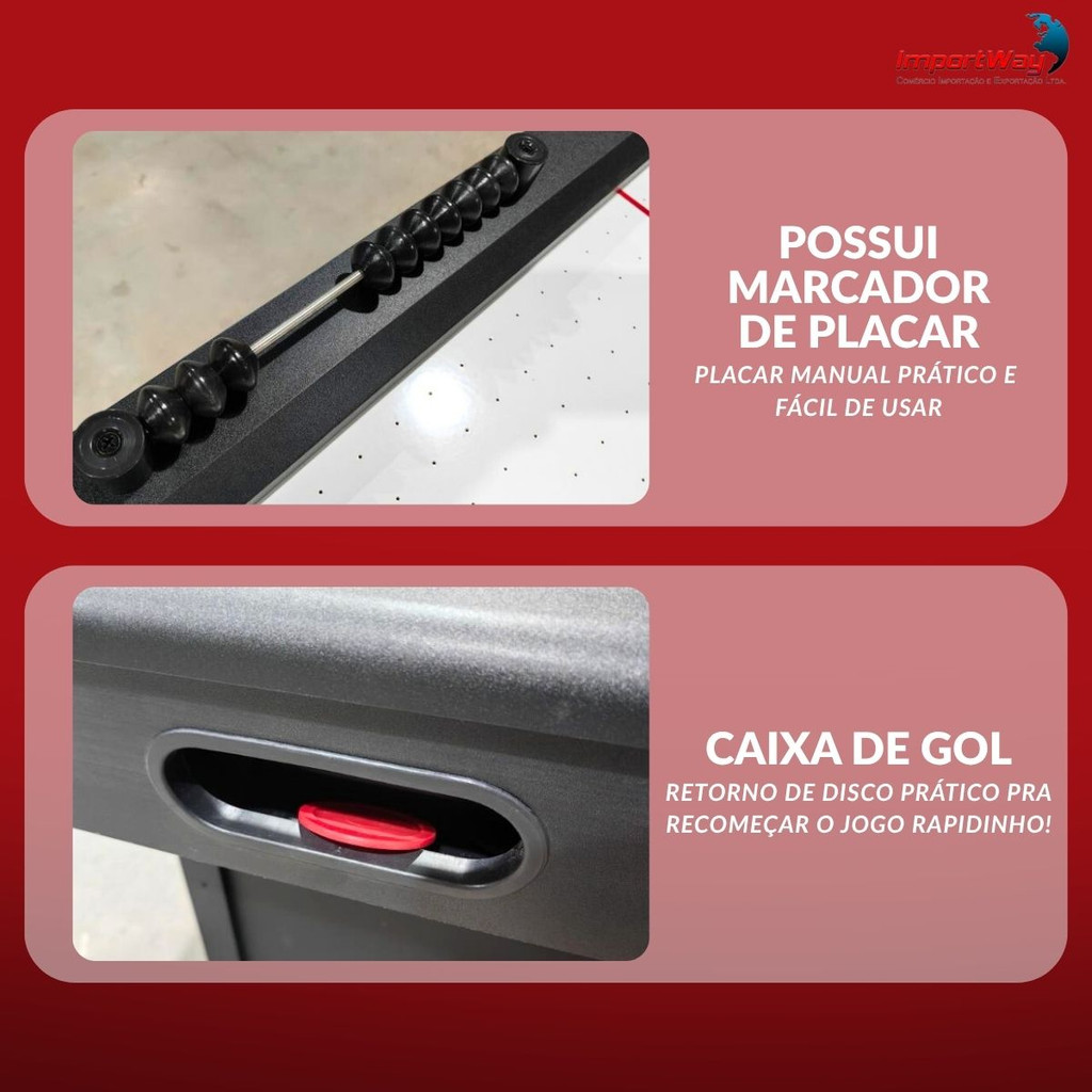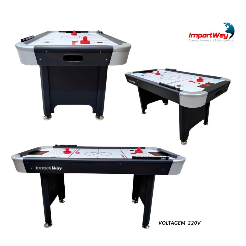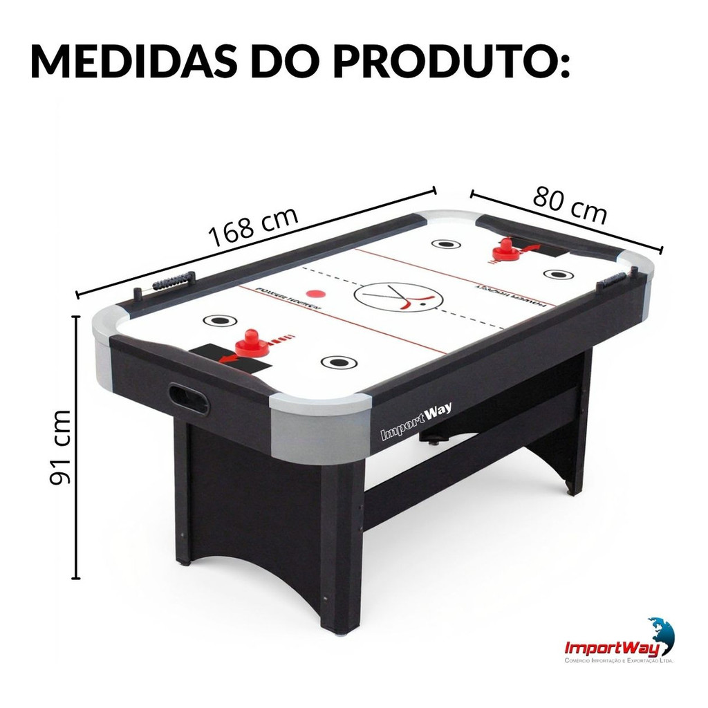Mesa Air Game AeroHockey 168x91x80cm Elétrica 220V Com Marcador, Discos e Empurrador Para Salão de Jogos
