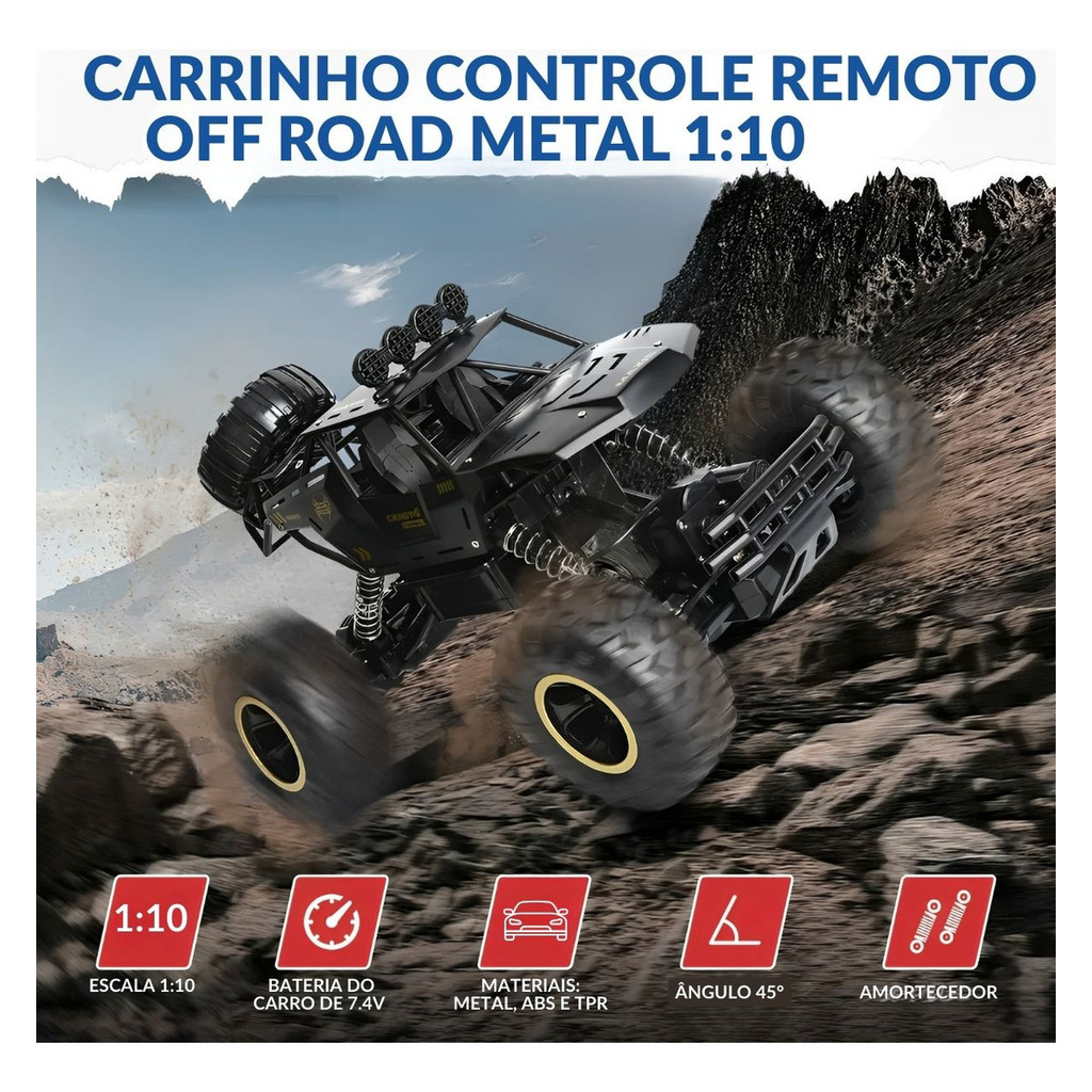 Carrinho Infantil Controle Remoto Off Road Metal Escala 1:10 Importway Alta Durabilidade e Diversão em Qualquer Terreno