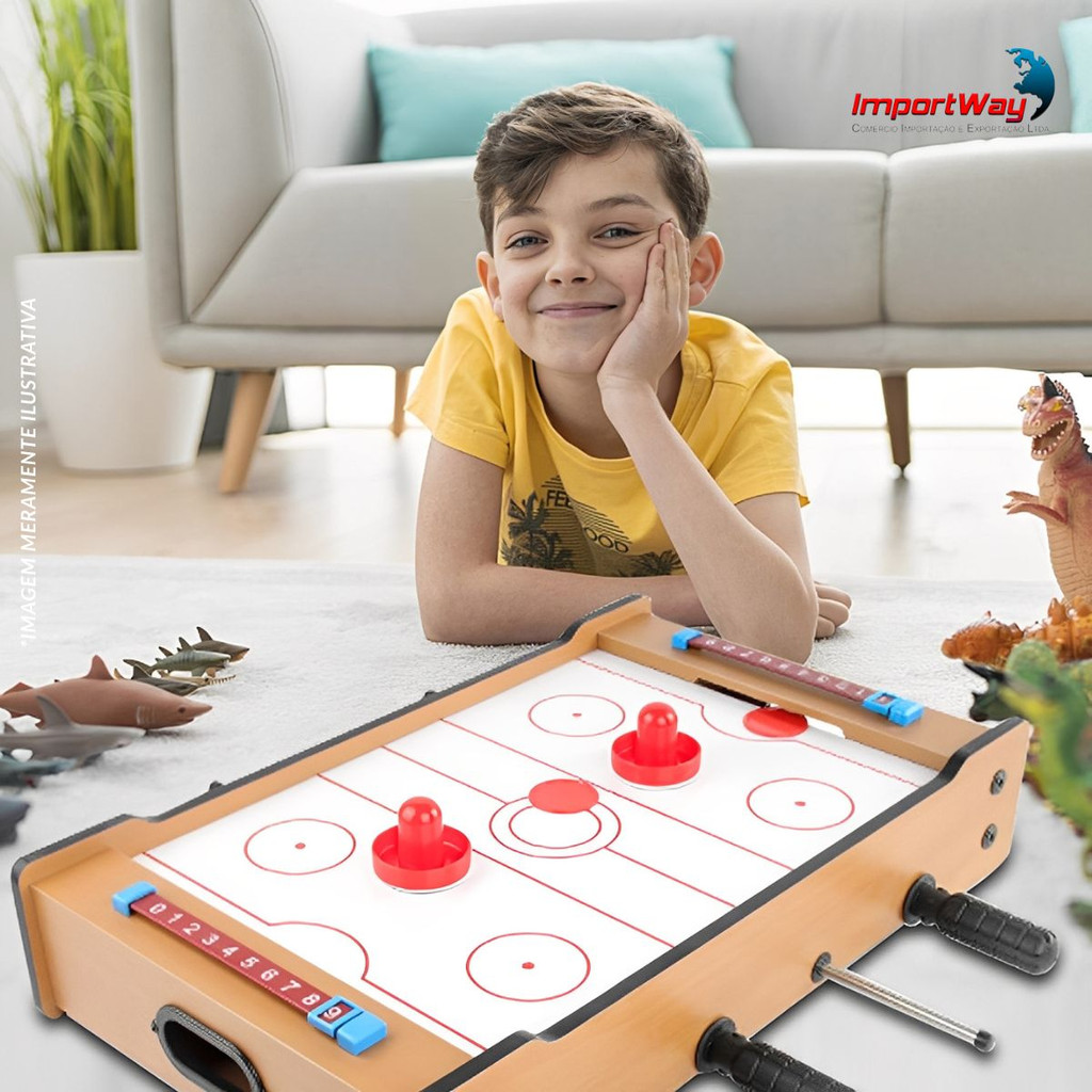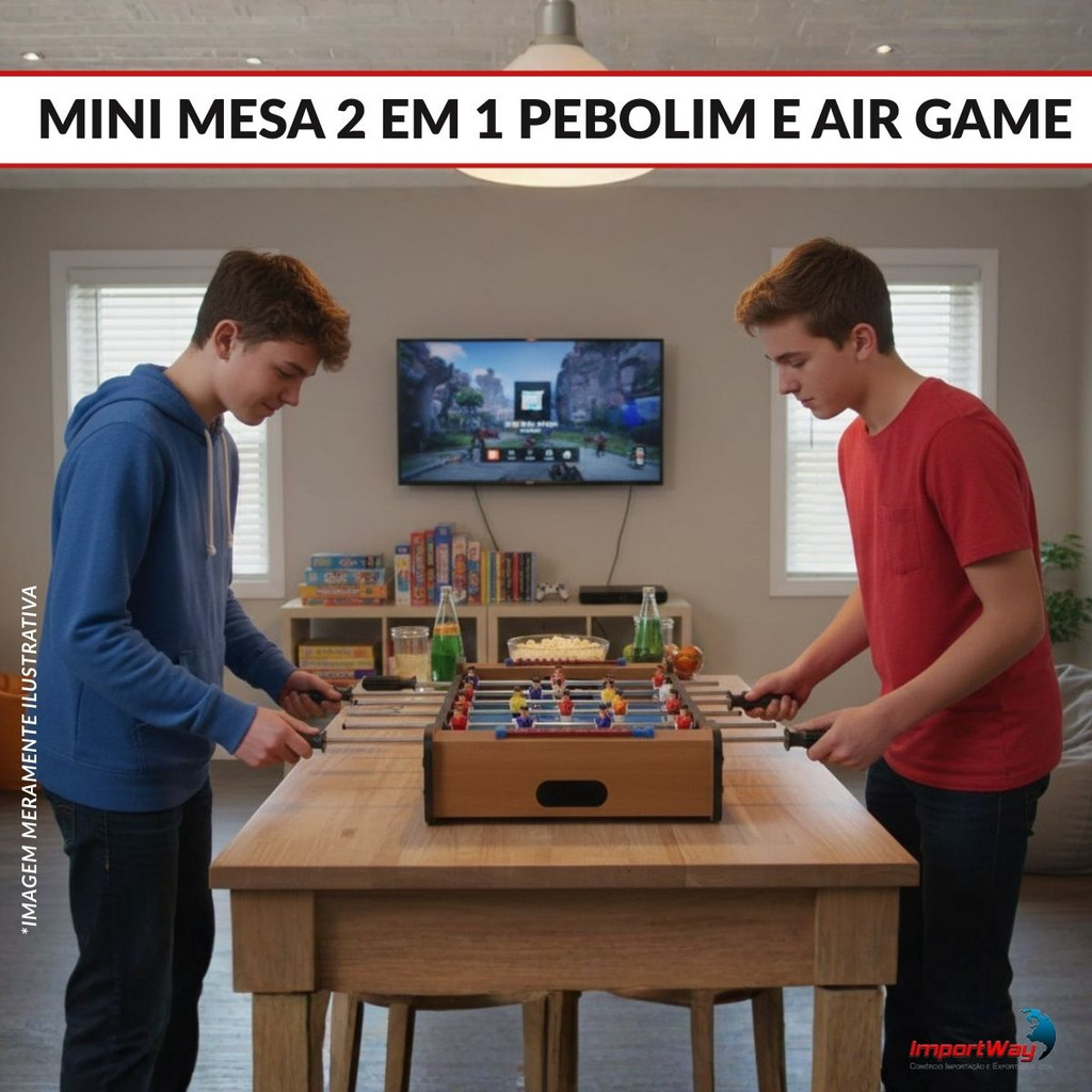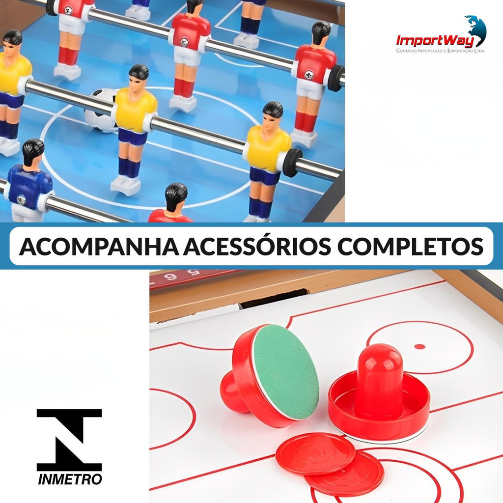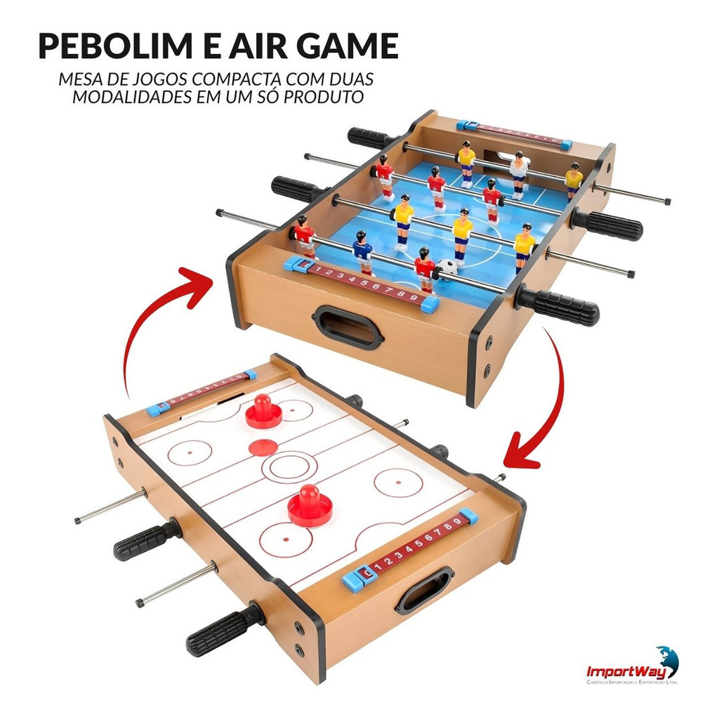 Mesa Infantil 2 em 1 Pebolim e Air Game Com Acessórios Completos Diversão Garantida Entre Amigos