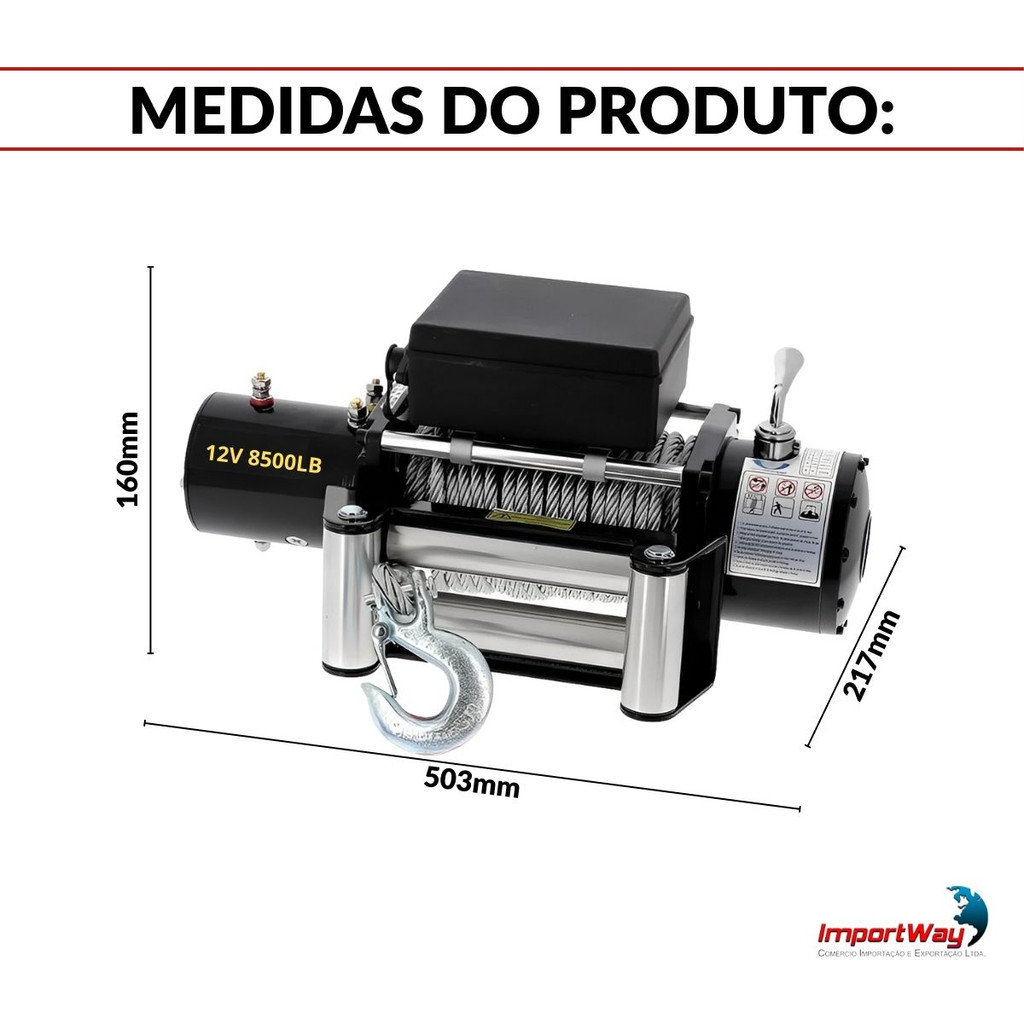 Guincho Elétrico 12V 8500LB Com Controle Remoto Sem Fio Ideal Para Off Road Reboque e Resgate Pesado