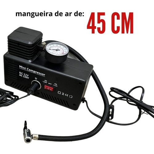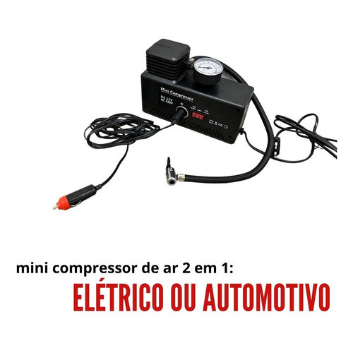 Mini Compressor De Ar 2 Em 1 Importway 250PSI Com Uso Elétrico E Automotivo, 30L/Min E 4 Bicos Adaptadores 127v