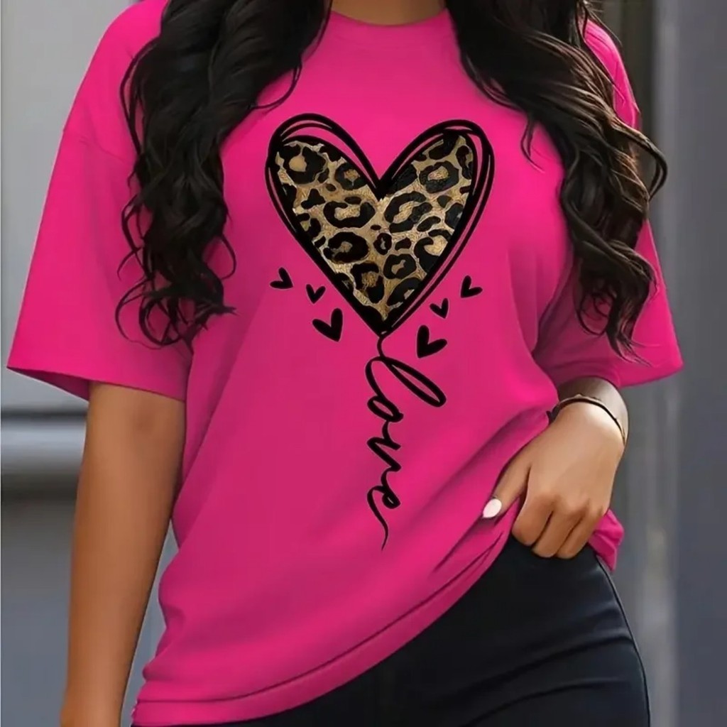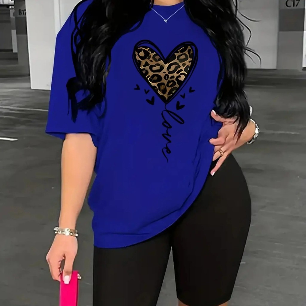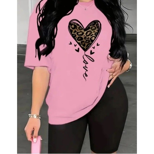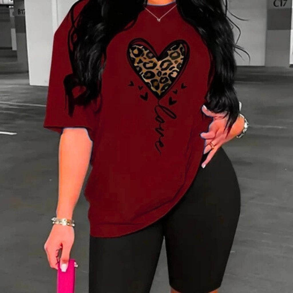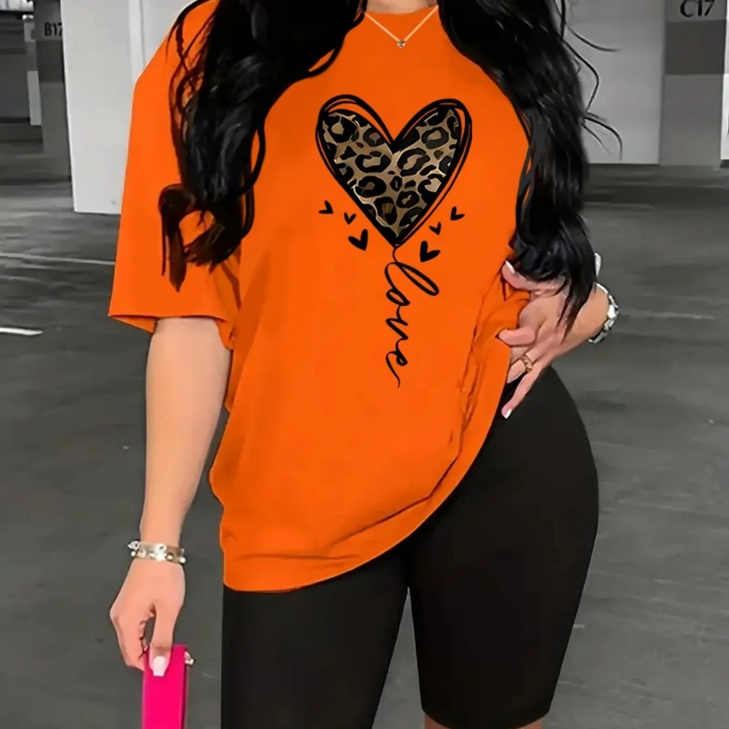 Camiseta Estampada Feminina Coração Impresão Solta Tamanho Grande Camiseta Leggings Premium Impres Store