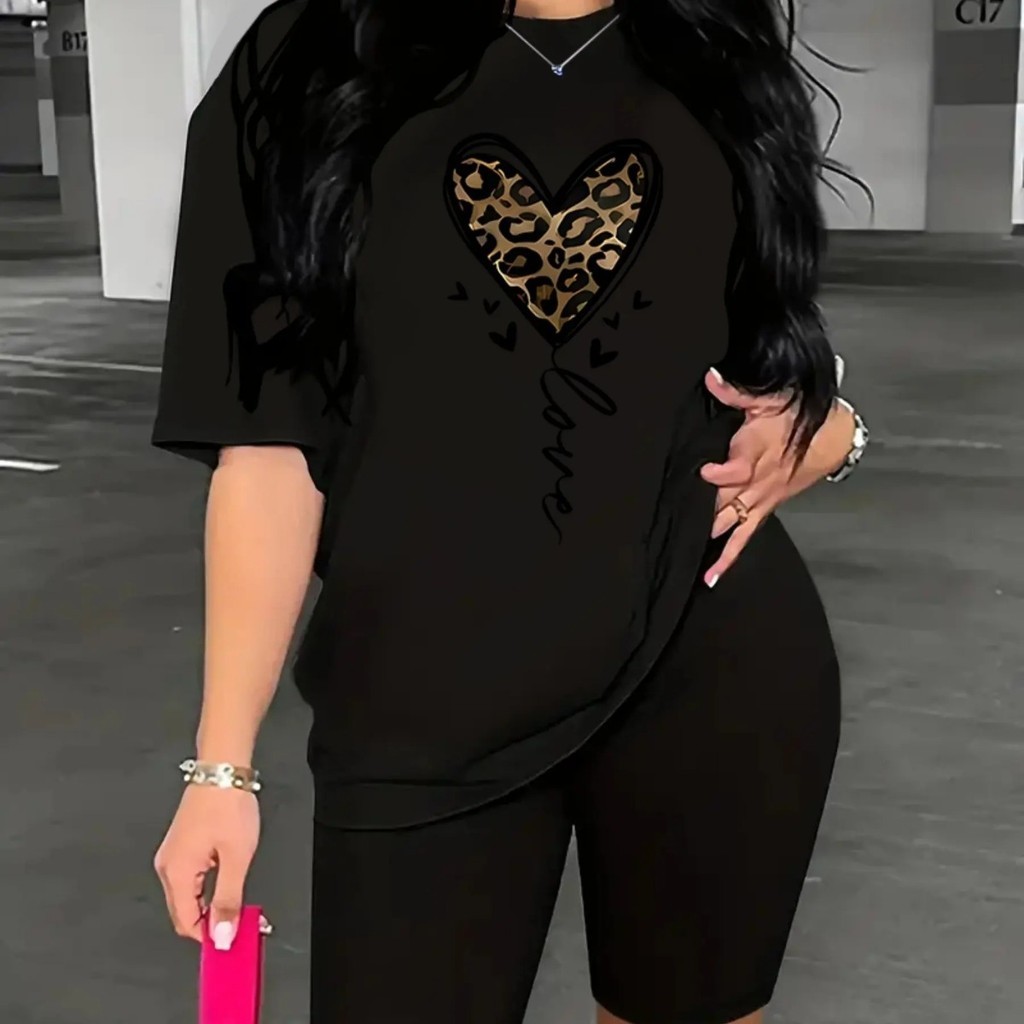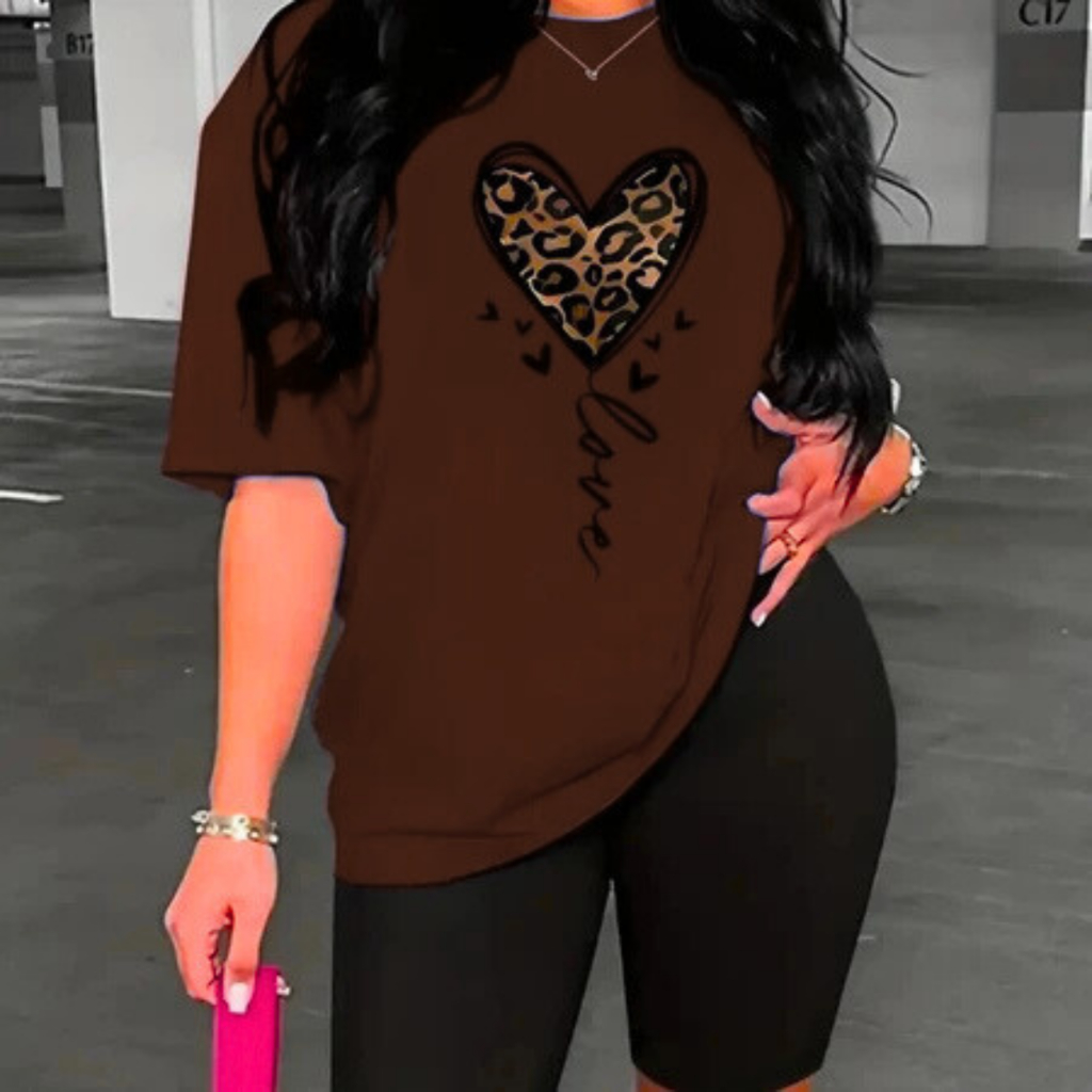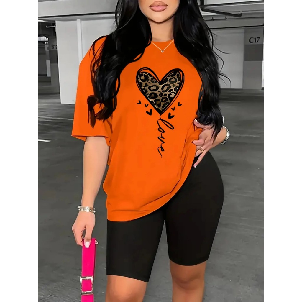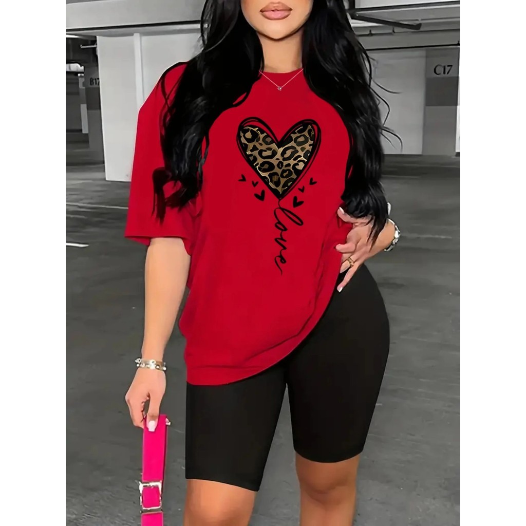 Camiseta Estampada Feminina Coração Impresão Solta Tamanho Grande Camiseta Leggings Premium Impres Store
