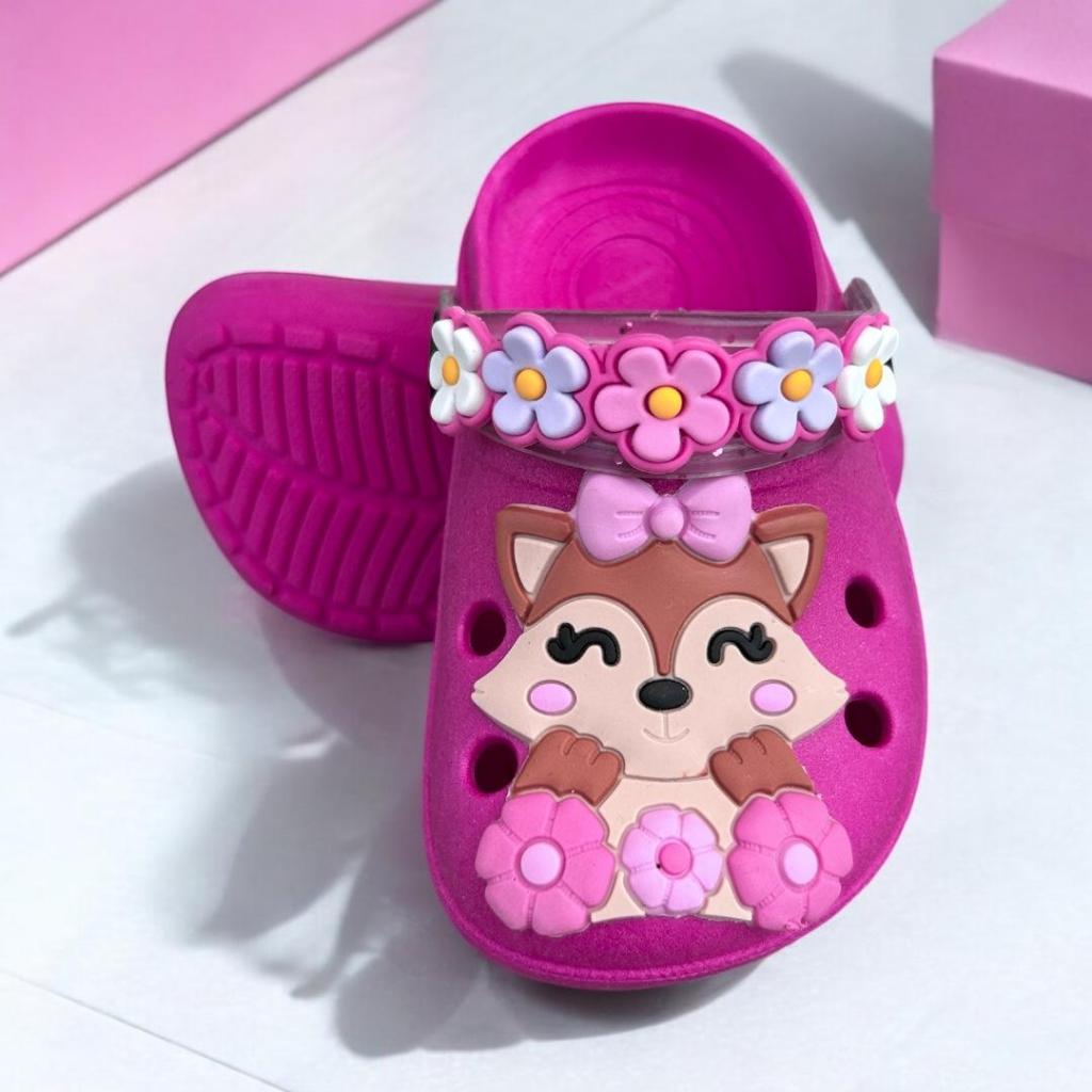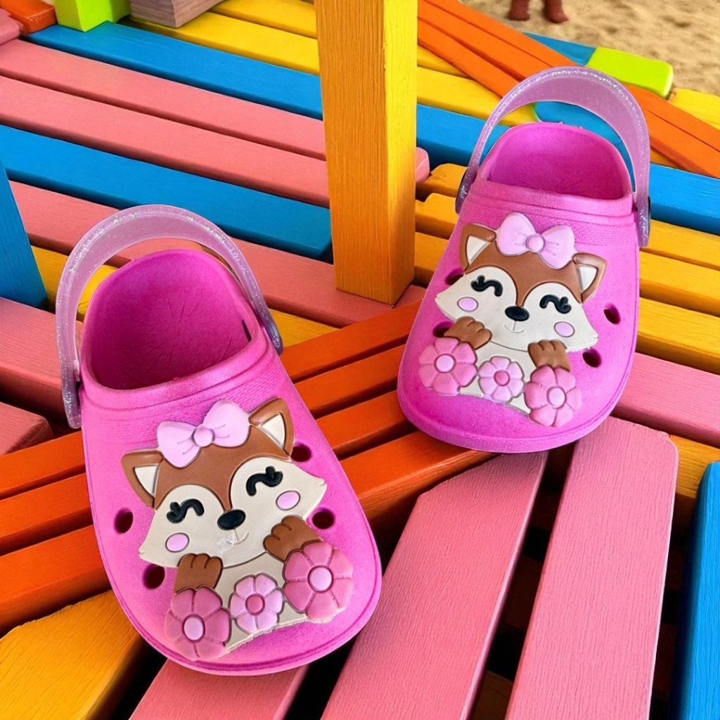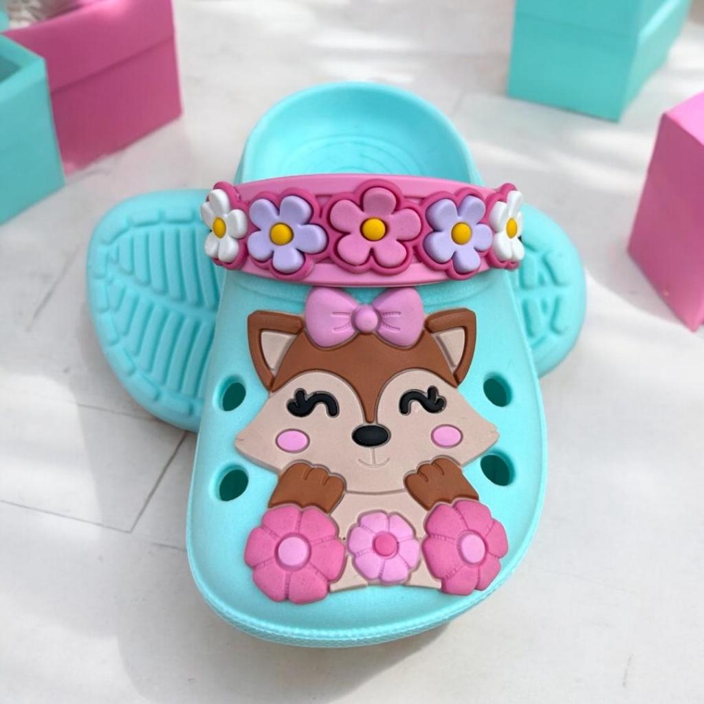 Babuche Infantil Menina Raposa Raposinha Flor Sandalia Leve Confortavel Delicado Antiderrapante
