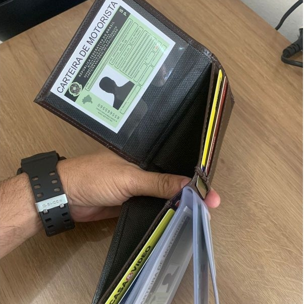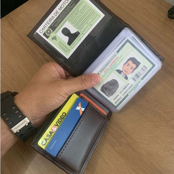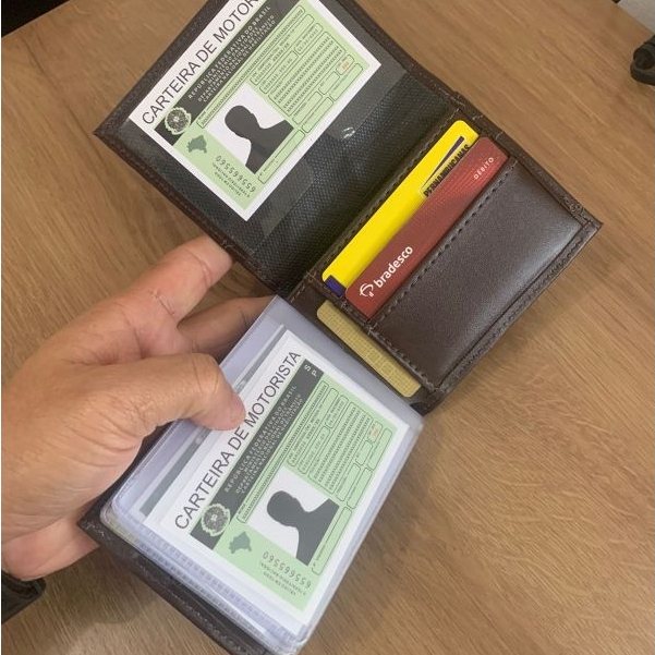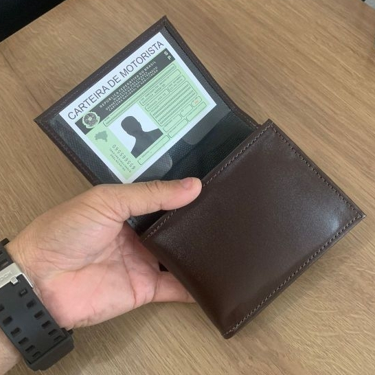 Carteira masculina Couro Sintético Compacta Cartões CNH Cédulas