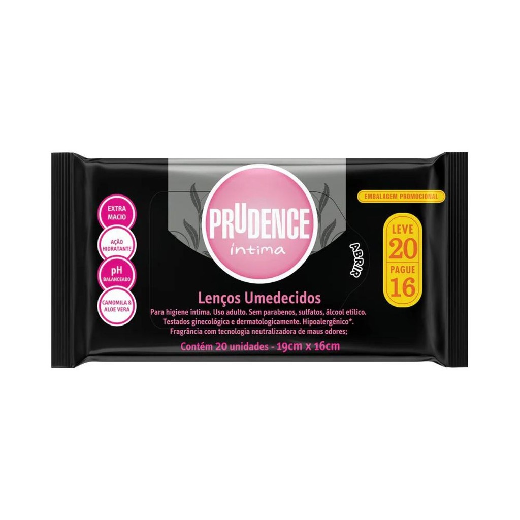 Lenço Umedecido Prudence Íntima com 20 unidades