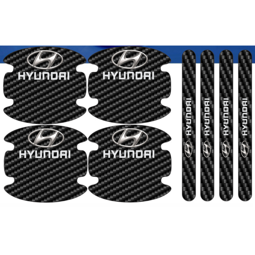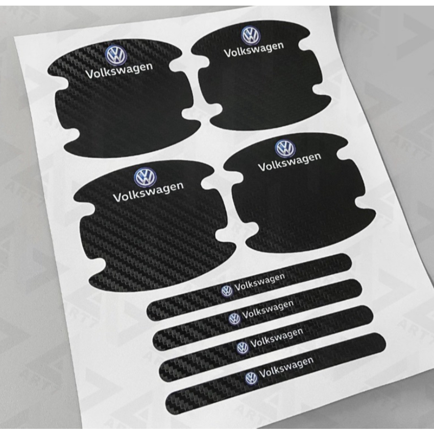 Kit 8 Peças Adesivo Protetor Maçaneta de Porta Efeito Fibra de Carbono Carro Anti-Arranhões