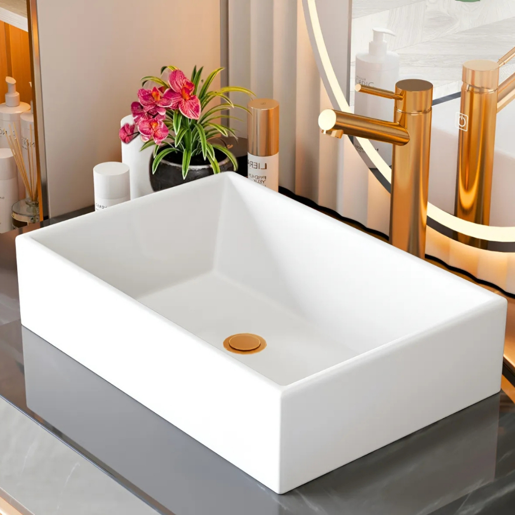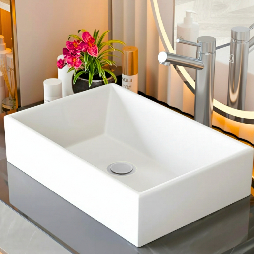 *PROMOÇÃO* Pia Para Banheiro Cuba de Sobrepor 40cm Apoio Lavabo Retangular Mármore Sintético Branca