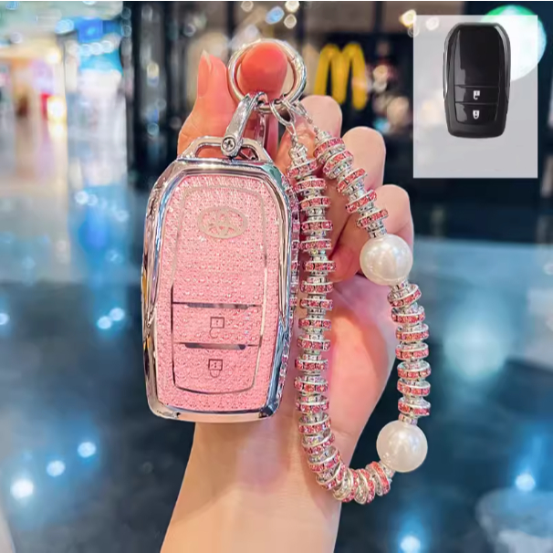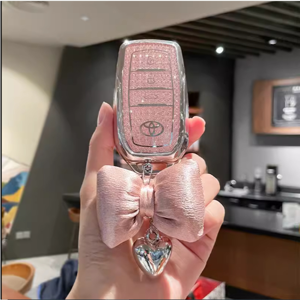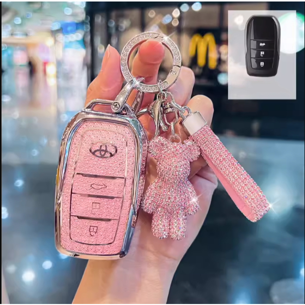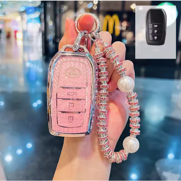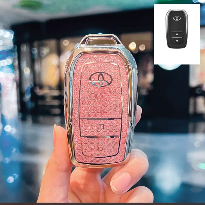 Para Toyota Hilux Rogue & Revo/Innova/Fortuner/RAV4/Crown/Land Cruiser/Prado Chave De Remota Bling TPU Tampa Da Caixa Borda De Prata
