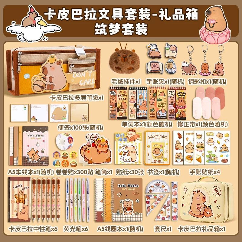 Kit de Papelaria Capivara Completo Estojo Escolar com Canetas Caderno Presente Infantil