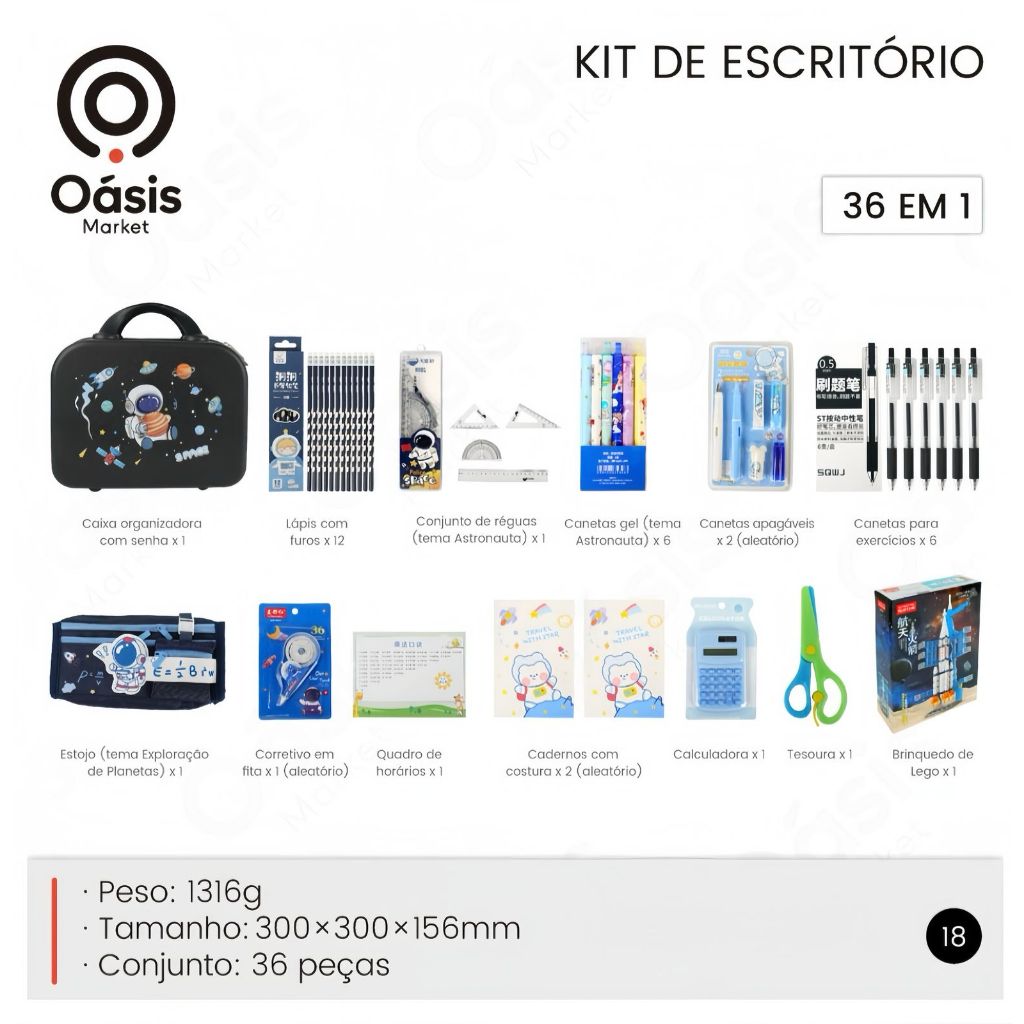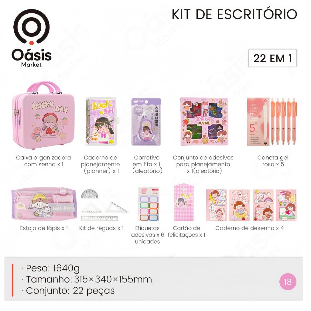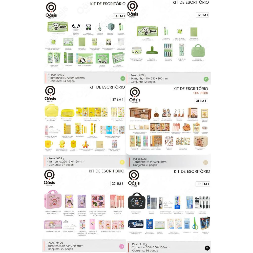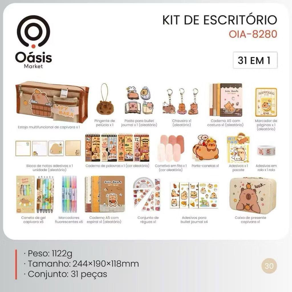 Caixa de presente Capivara material escolar de papelaria 458 peças + caixa de presente OIA-8280
