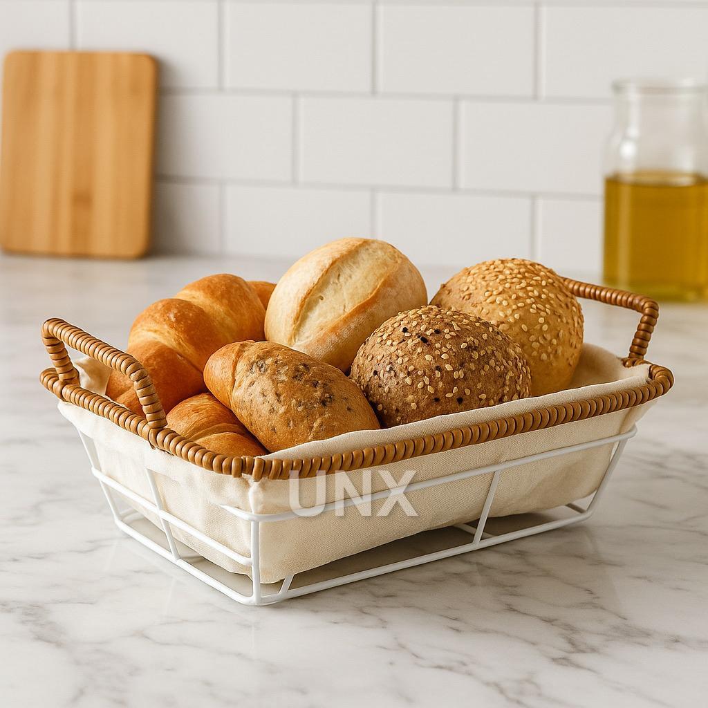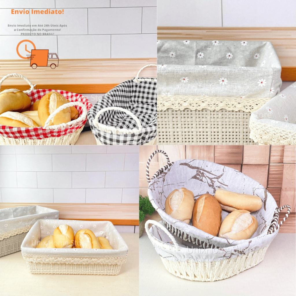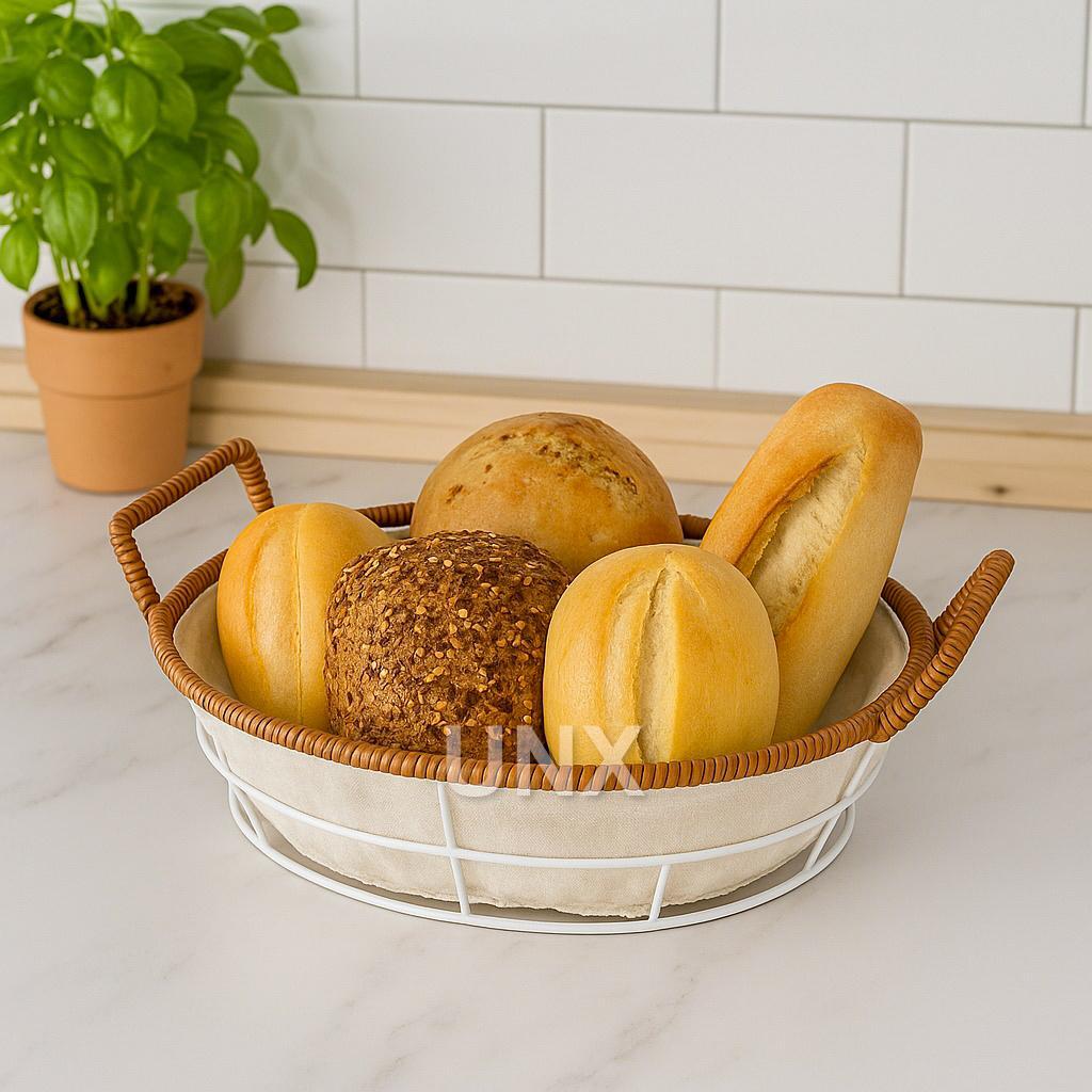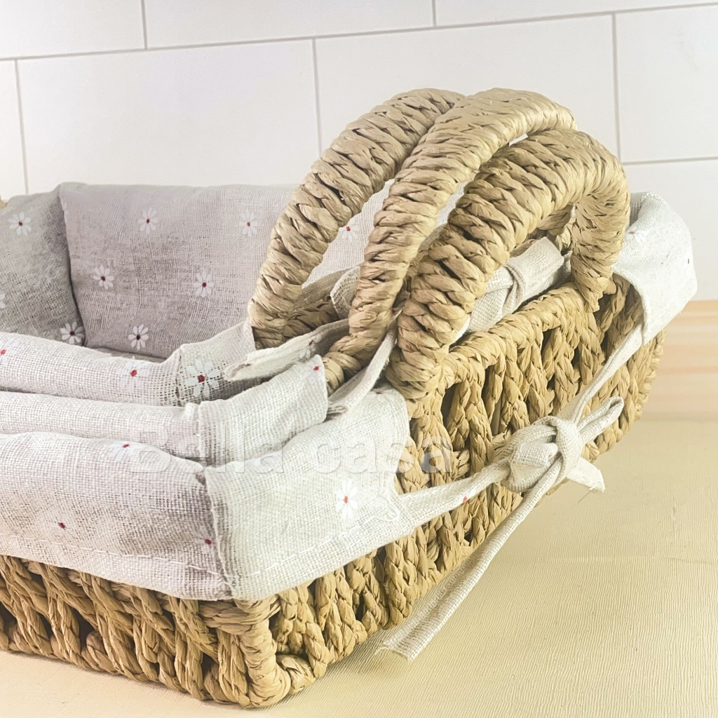 Cesto de Pão Tecido Lavável Cesta Decorativa com Alça Lateral Café da Manhã Mesa Posta Casa Cozinha