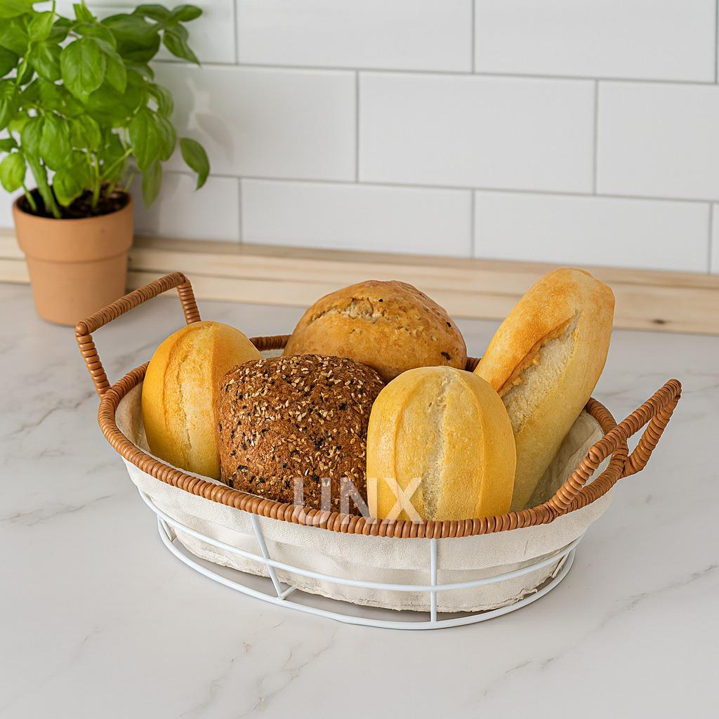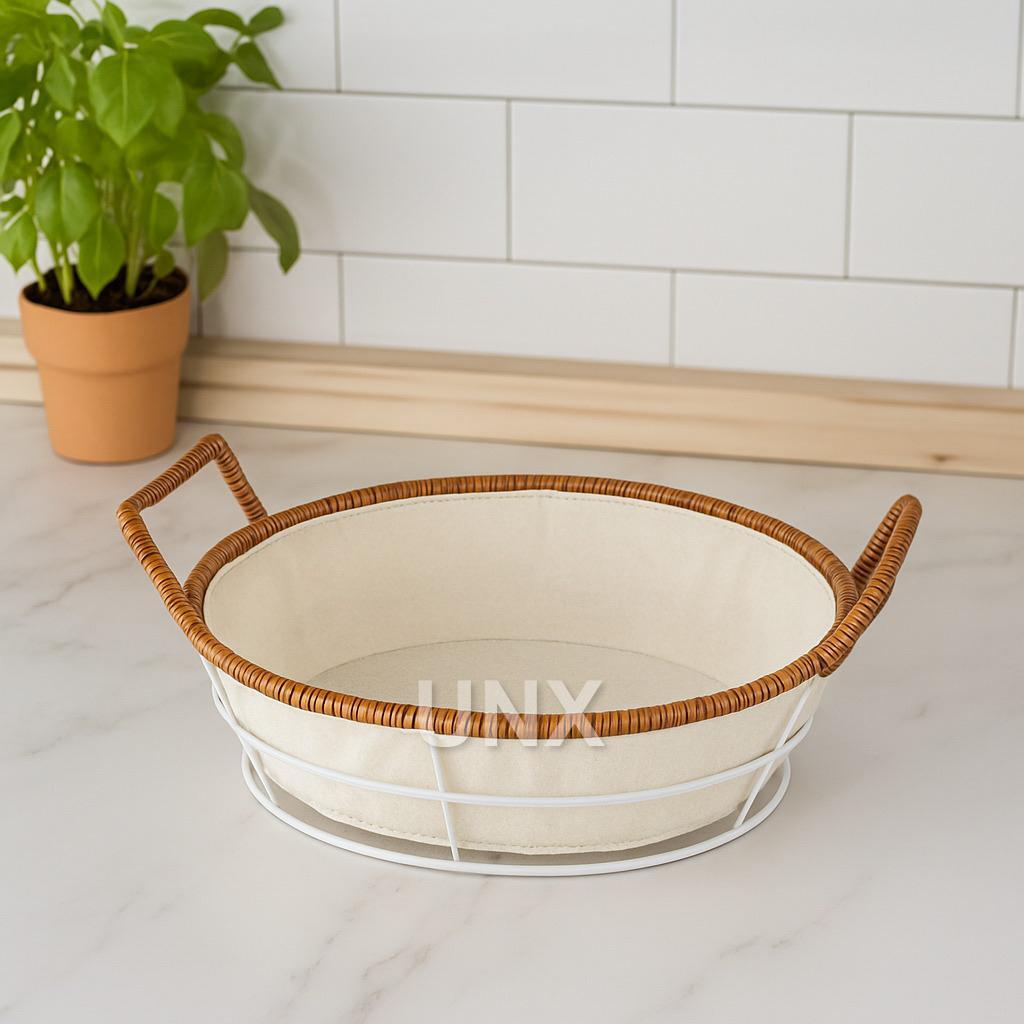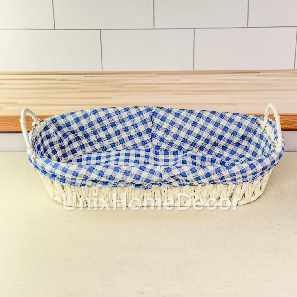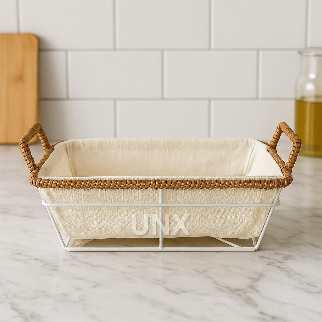 Cesto de Pão Tecido Lavável Cesta Decorativa com Alça Lateral Café da Manhã Mesa Posta Casa Cozinha