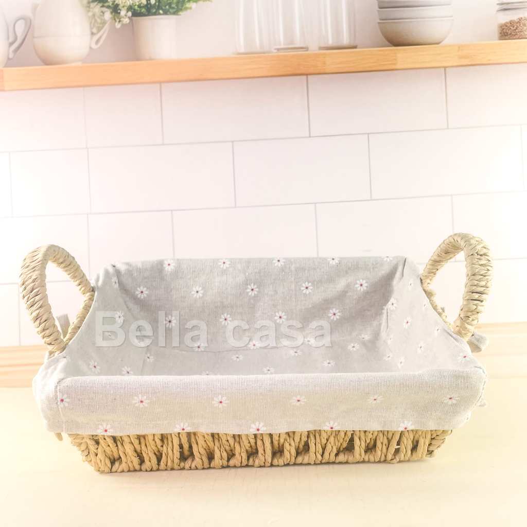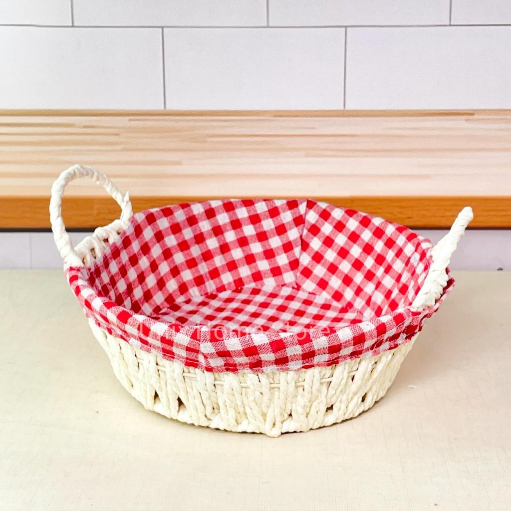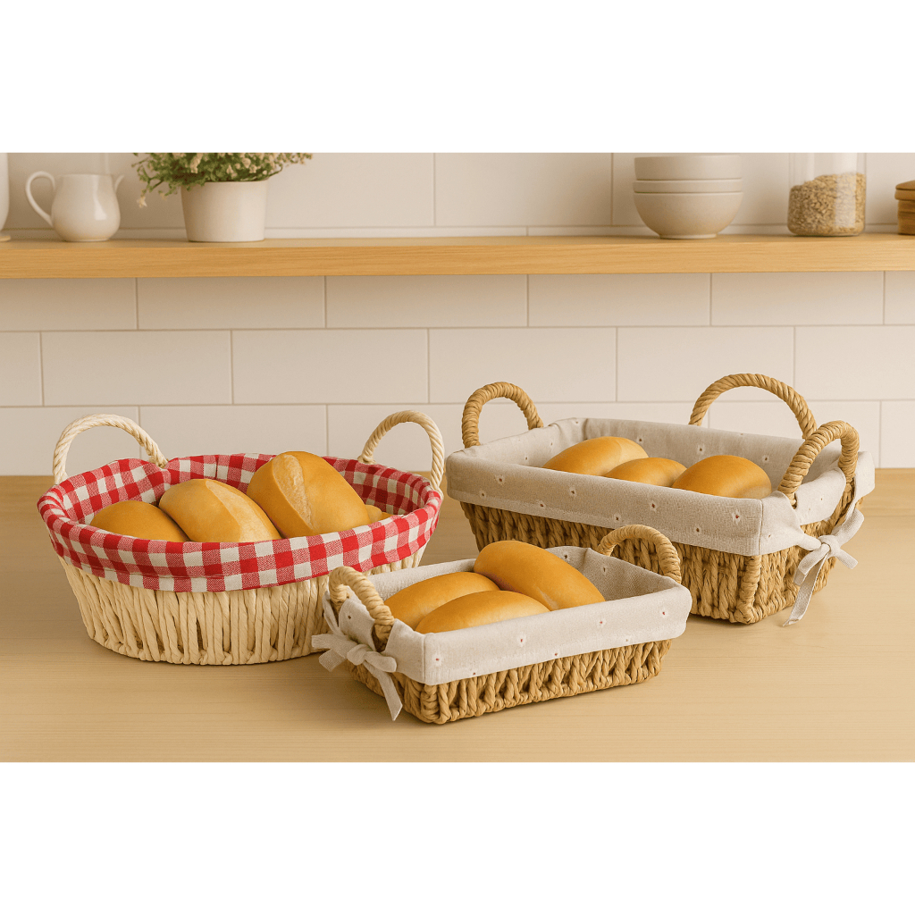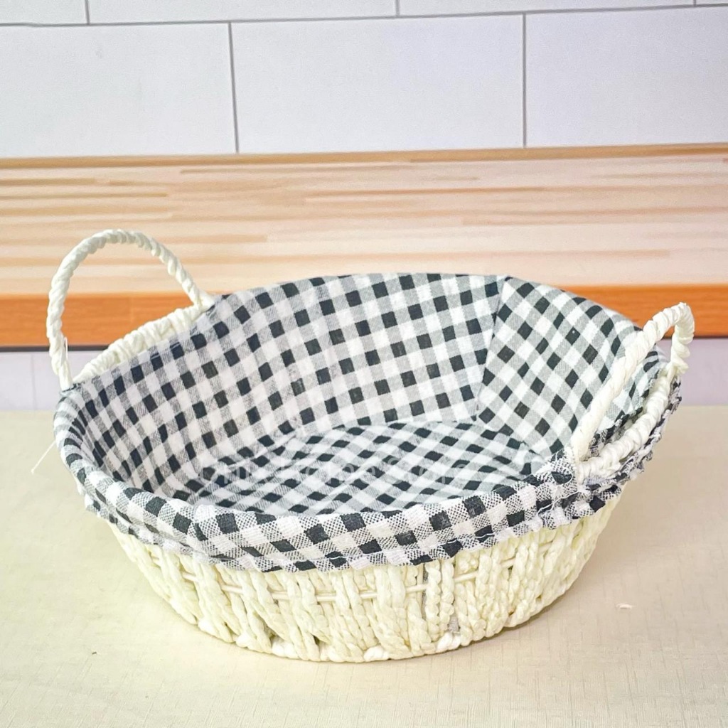 Cesto de Pão Tecido Lavável Cesta Decorativa com Alça Lateral Café da Manhã Mesa Posta Casa Cozinha