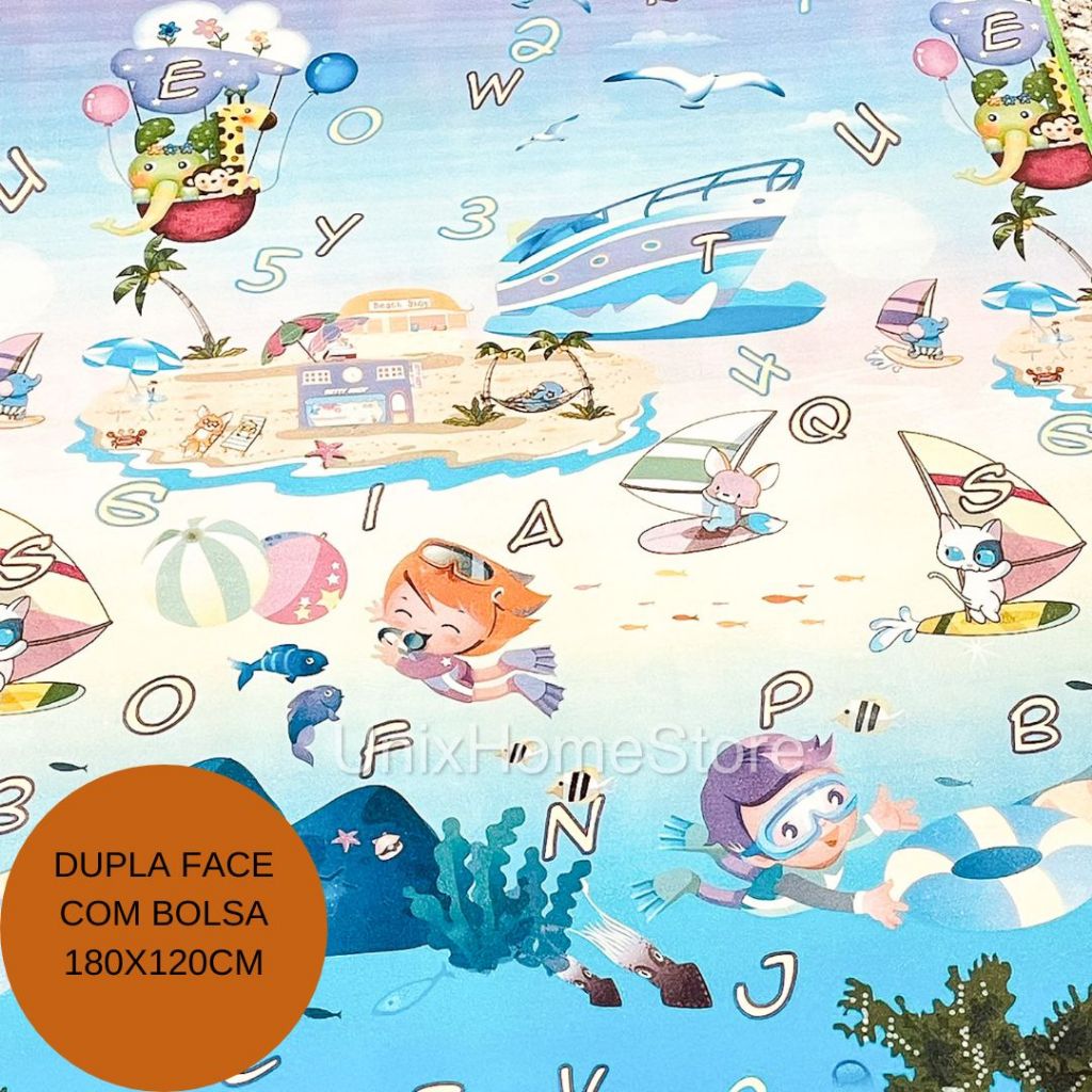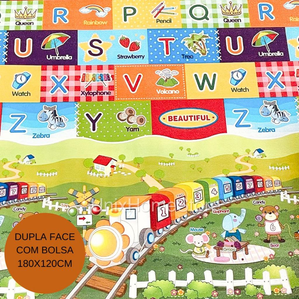 Tapete de Atividades Infantil Interativo 180x120 Térmico Bebê Gigante Tatame Educativo Criança