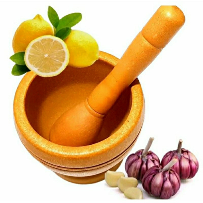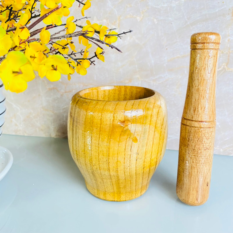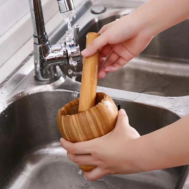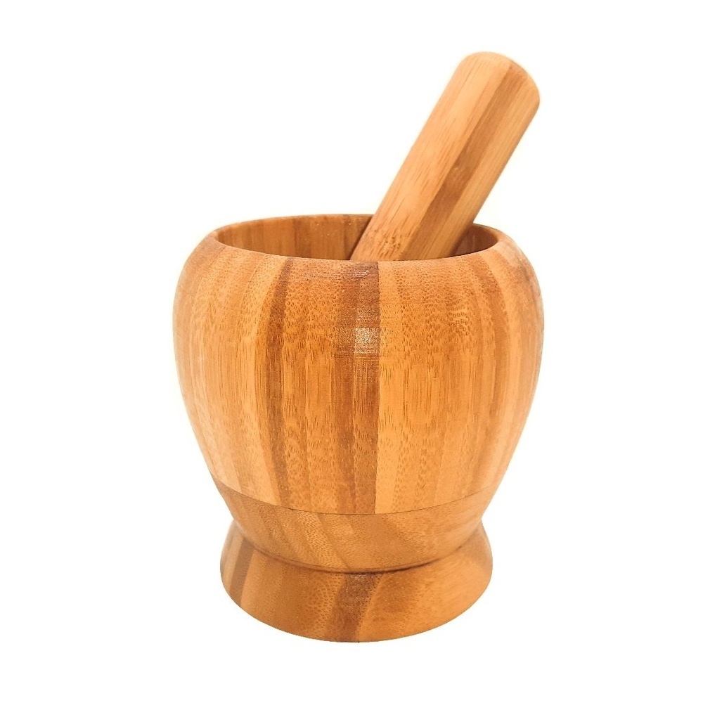 Pilão Socador Macerador de Alho Tempero Ervas Finas Condimentos Bambu Resistente Casa Cozinha
