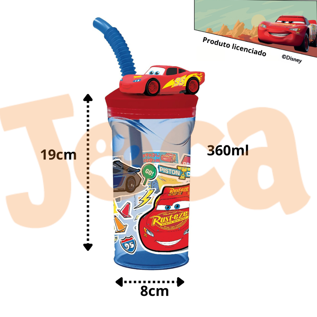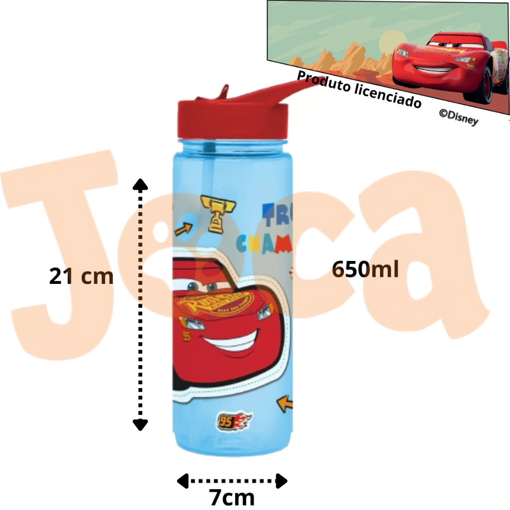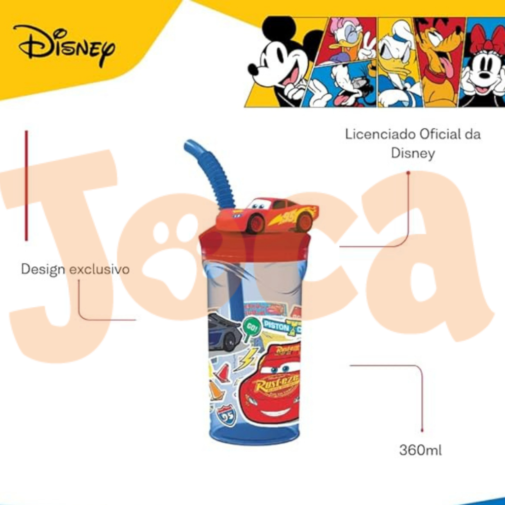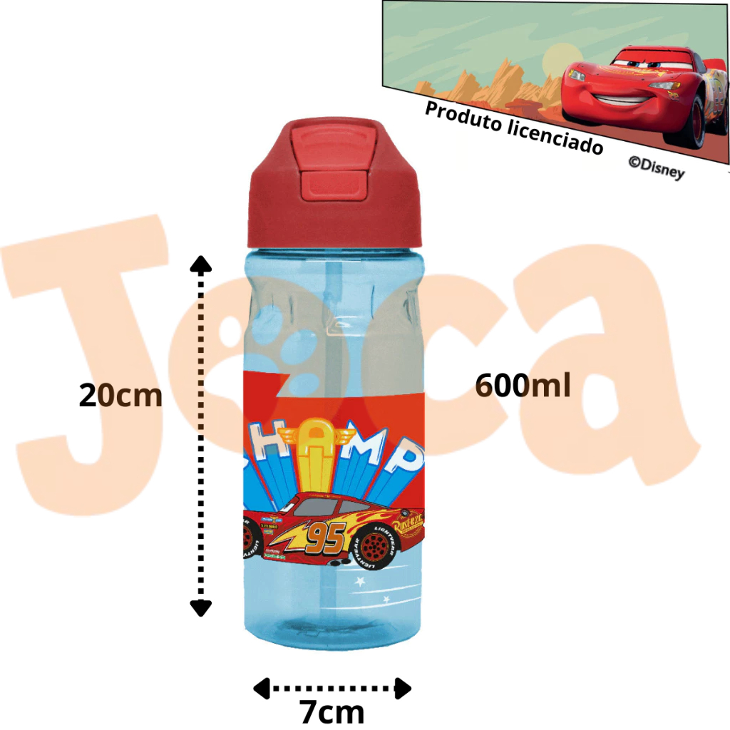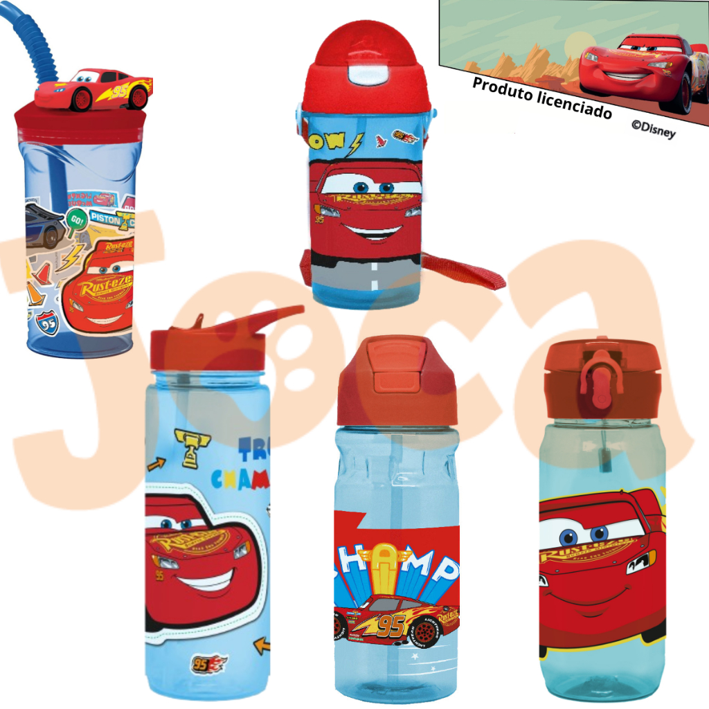 Garrafas Com Tampa E Canudo Disney Carros - Relâmpago McQueem - Produto Licenciado