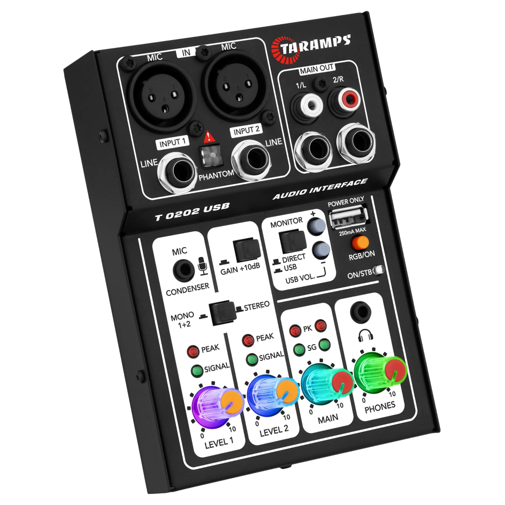 Mesa De Som Taramps T 0202 Interface USB XLR P10 Phantom Power 48v Preta Steaming Home Studio