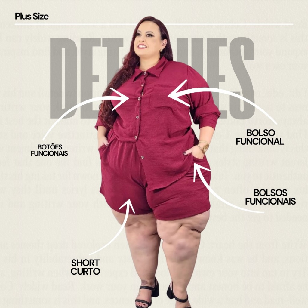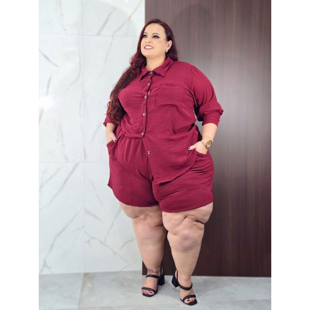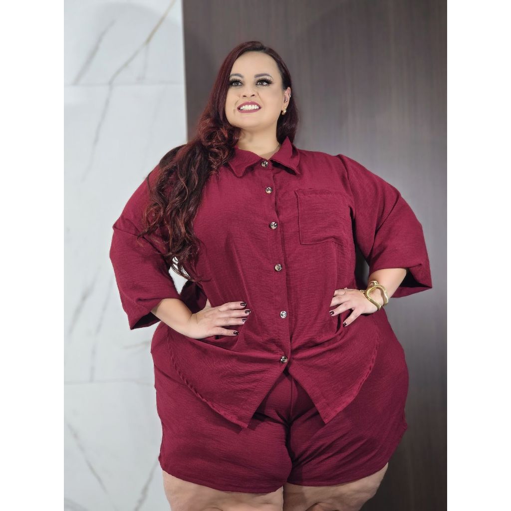 Conjunto Plus Size Feminino Camisa Manga Longa e Short Social 56 ao 60