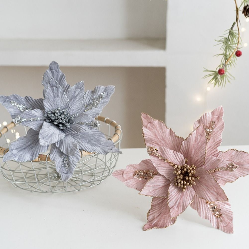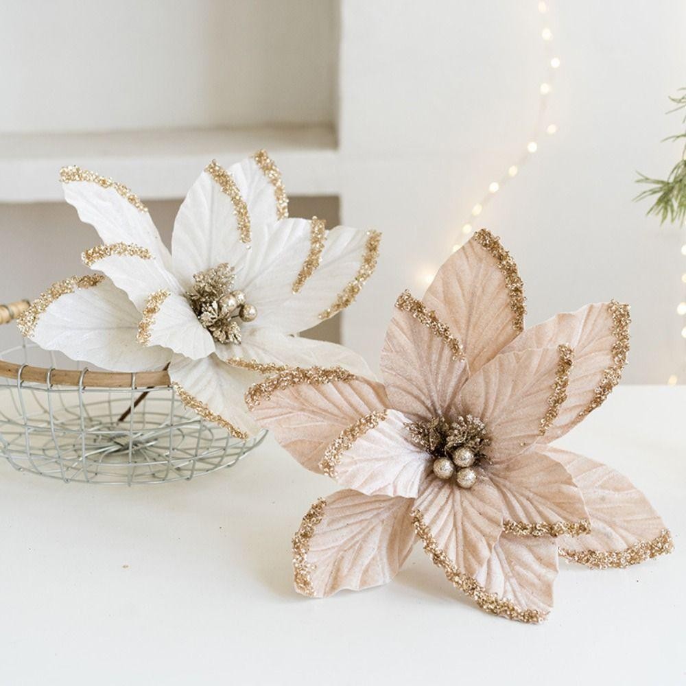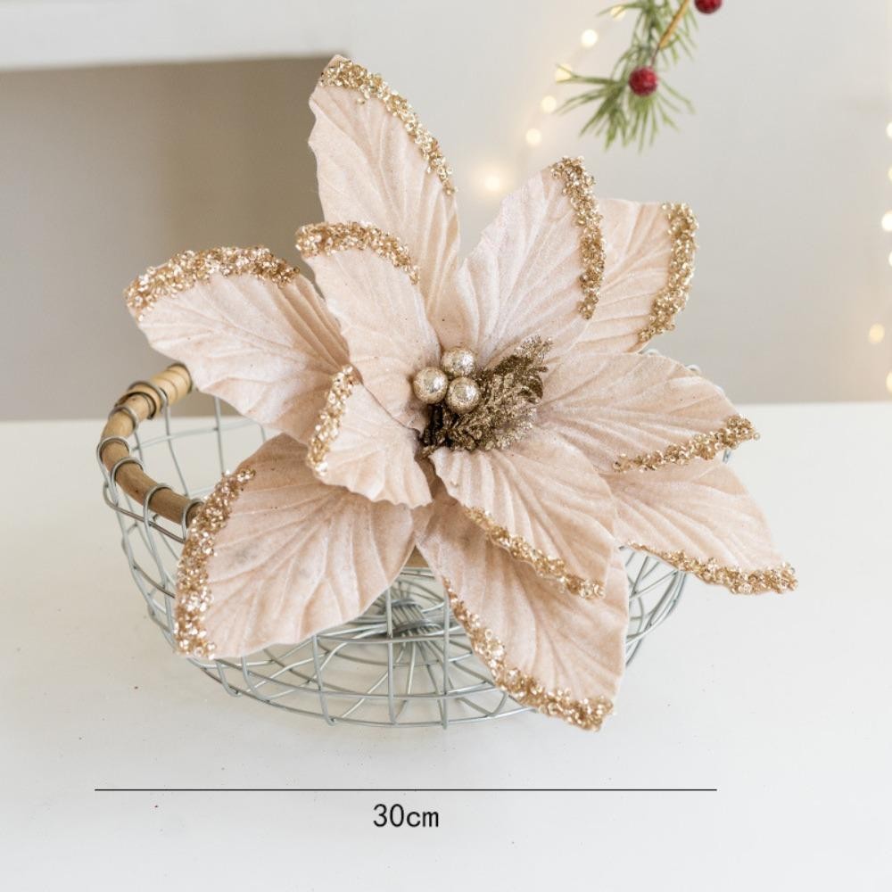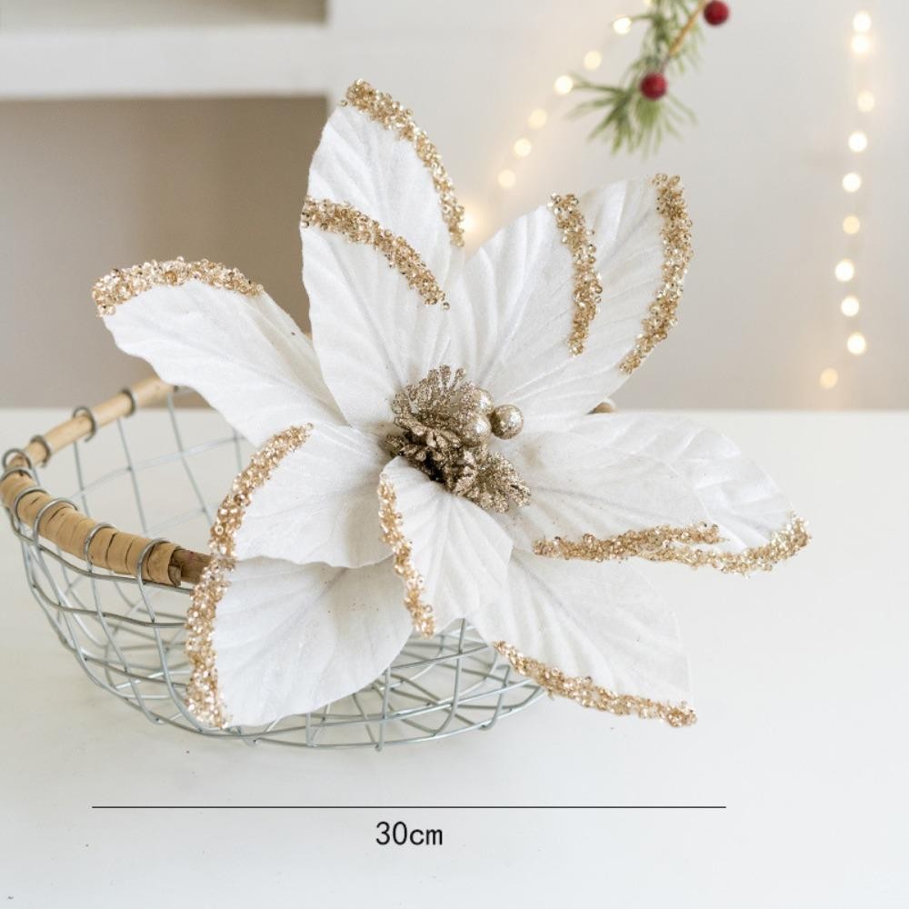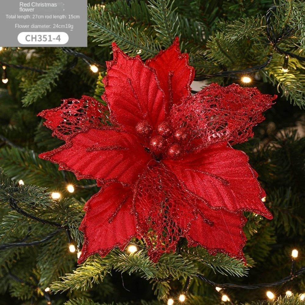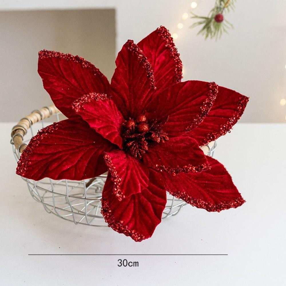 Acima Da Flor Falsa , 30cm DIY Decoração Flores Artificiais De Natal , Tecido Plástico Glitter Poinsétia