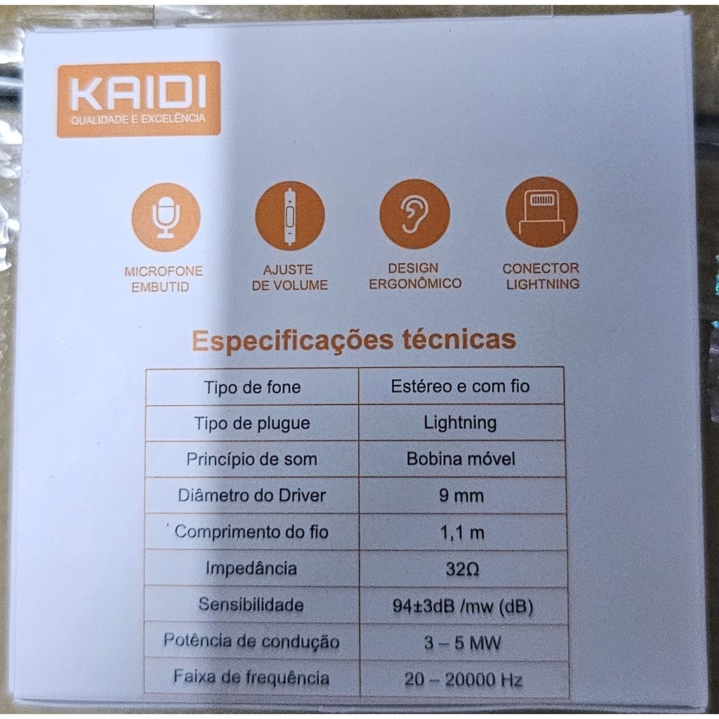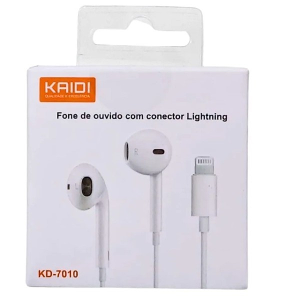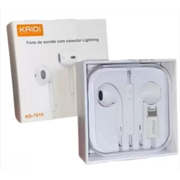 Fone De ouvido Entrada lightning Kaidi KD-7010 Controle De Volume e Chamadas - Branco