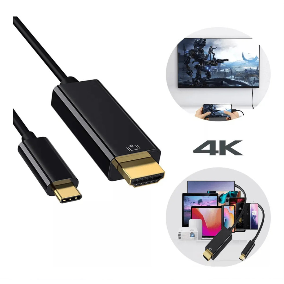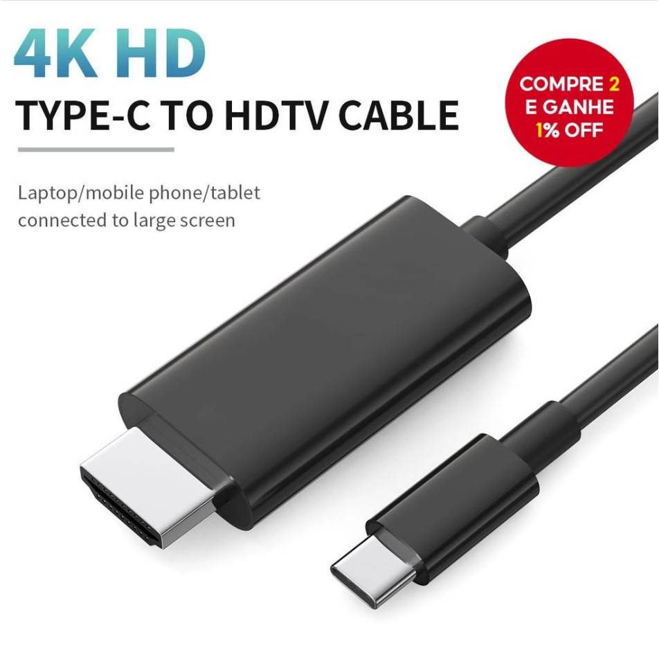 Cabo Tipo C Para HDMI 4K 1.5m USB-C Macho Para HDMI Macho Compatível com Notebook Celular Tablet TV e Monitor