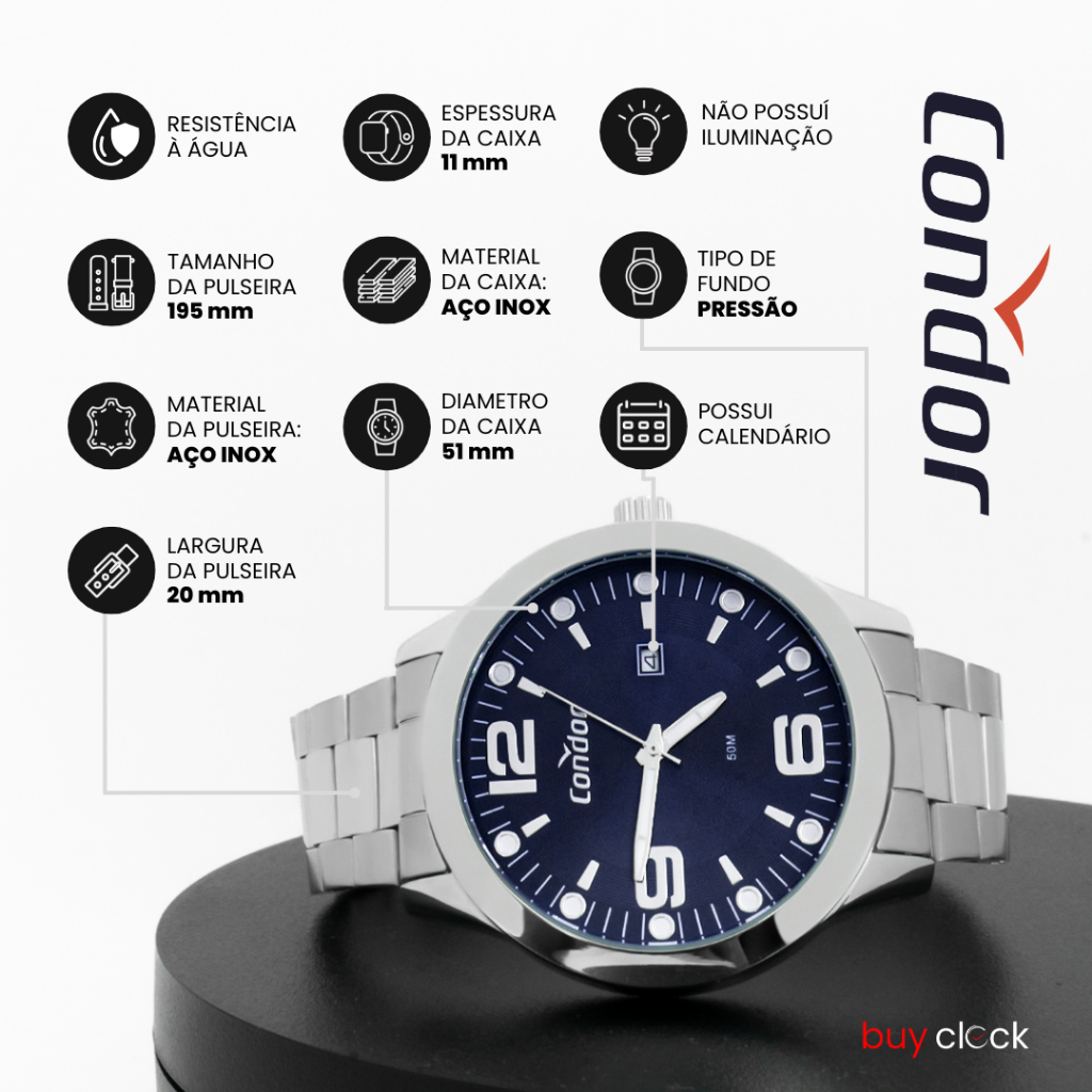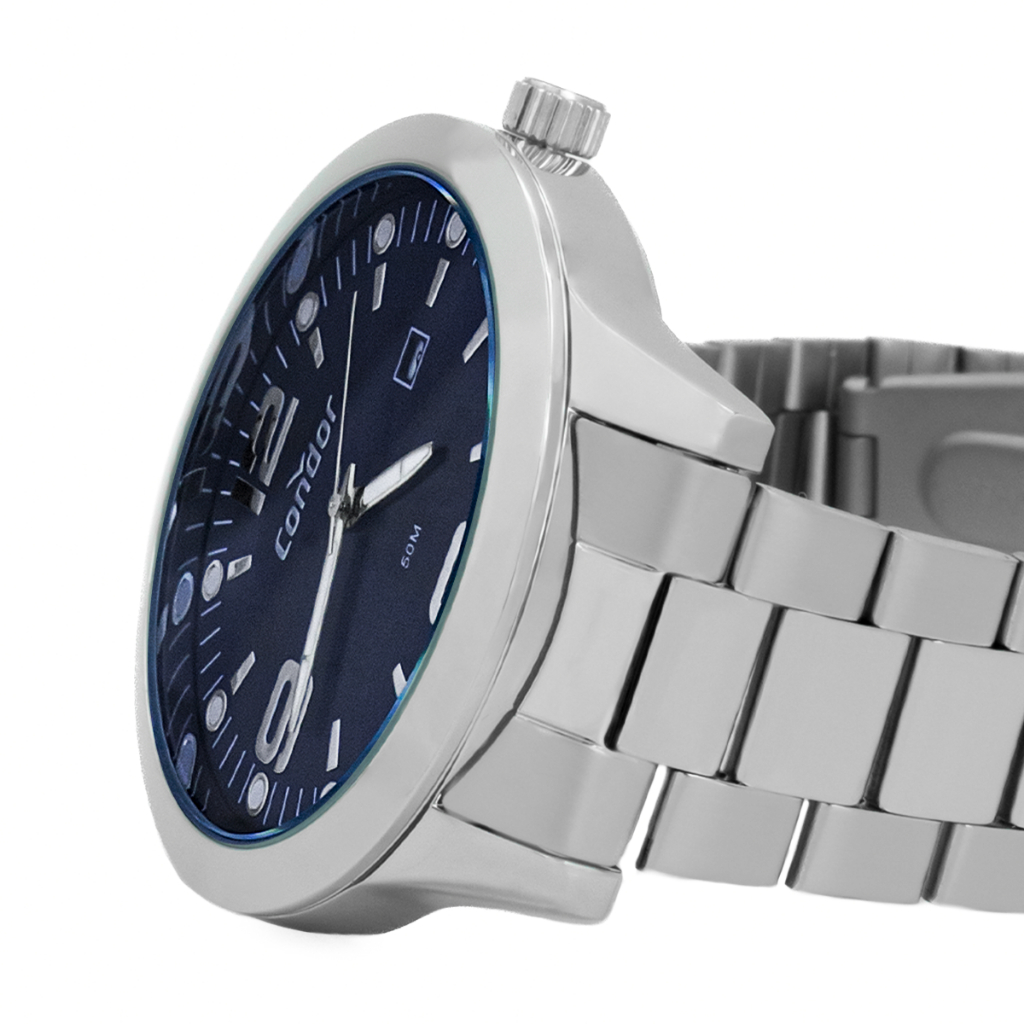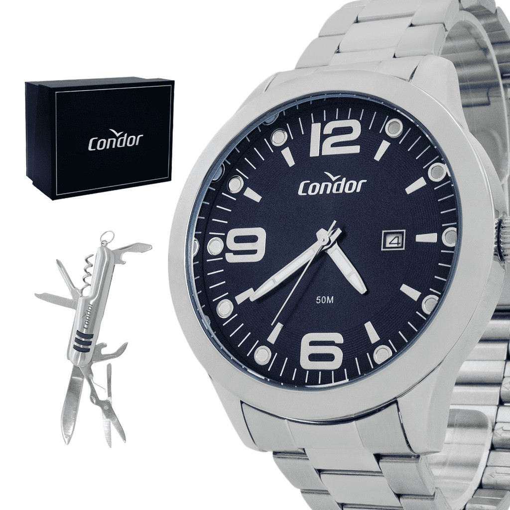 Relógio Masculino Condor Prata Azul Speed Original Resistente à Água Garantia 1 ano + Kit Canivete