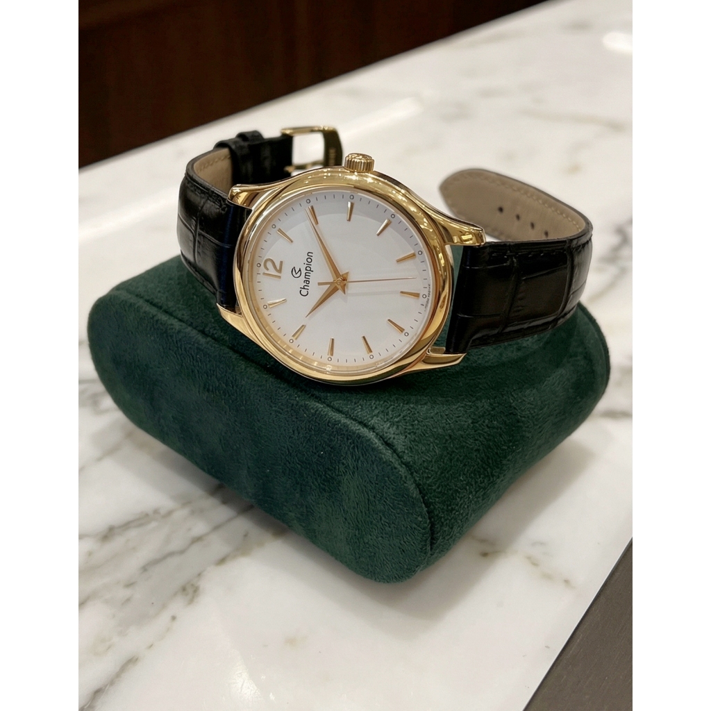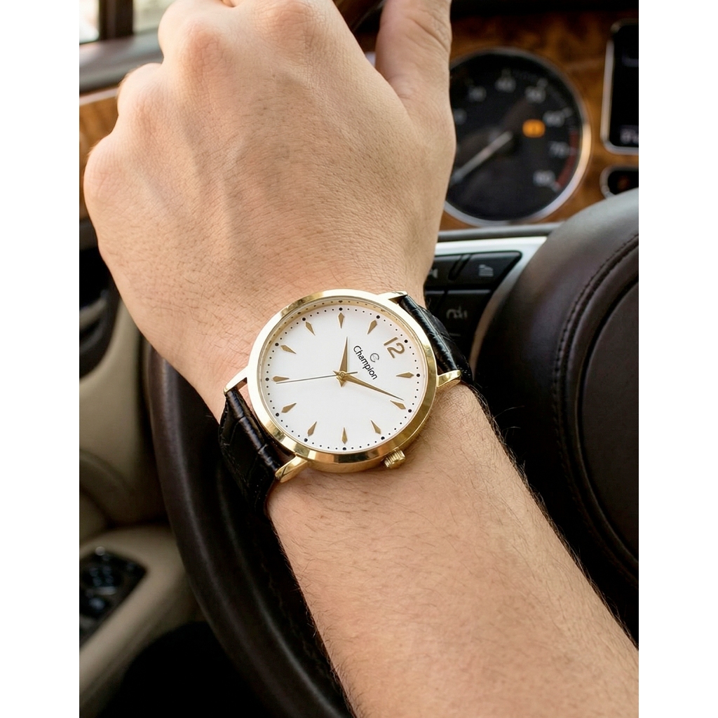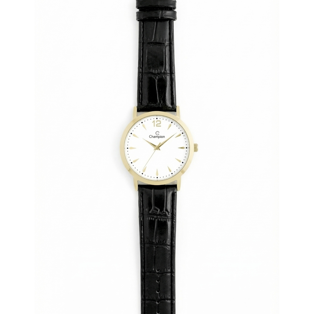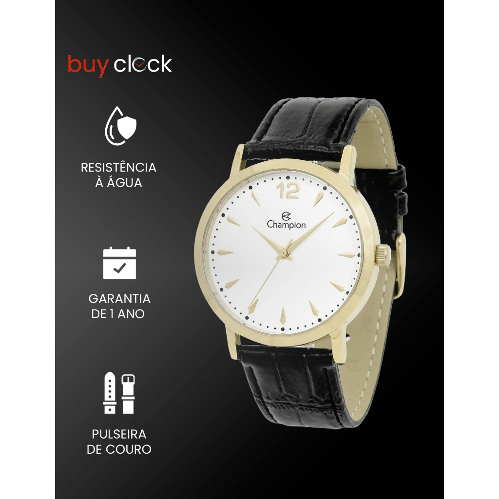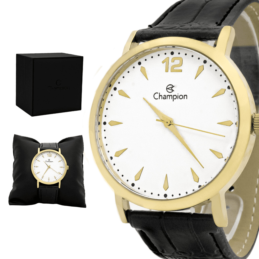 Relógio Masculino Champion Dourado Couro Preto Social Original Resistente à Água Garantia 1 ano
