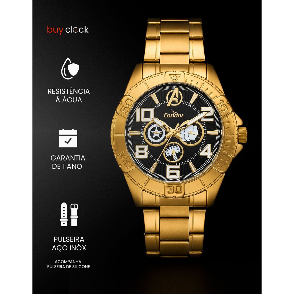 Relógio Condor Masculino Marvel Dourado Casual CO6P29JOXT4A
