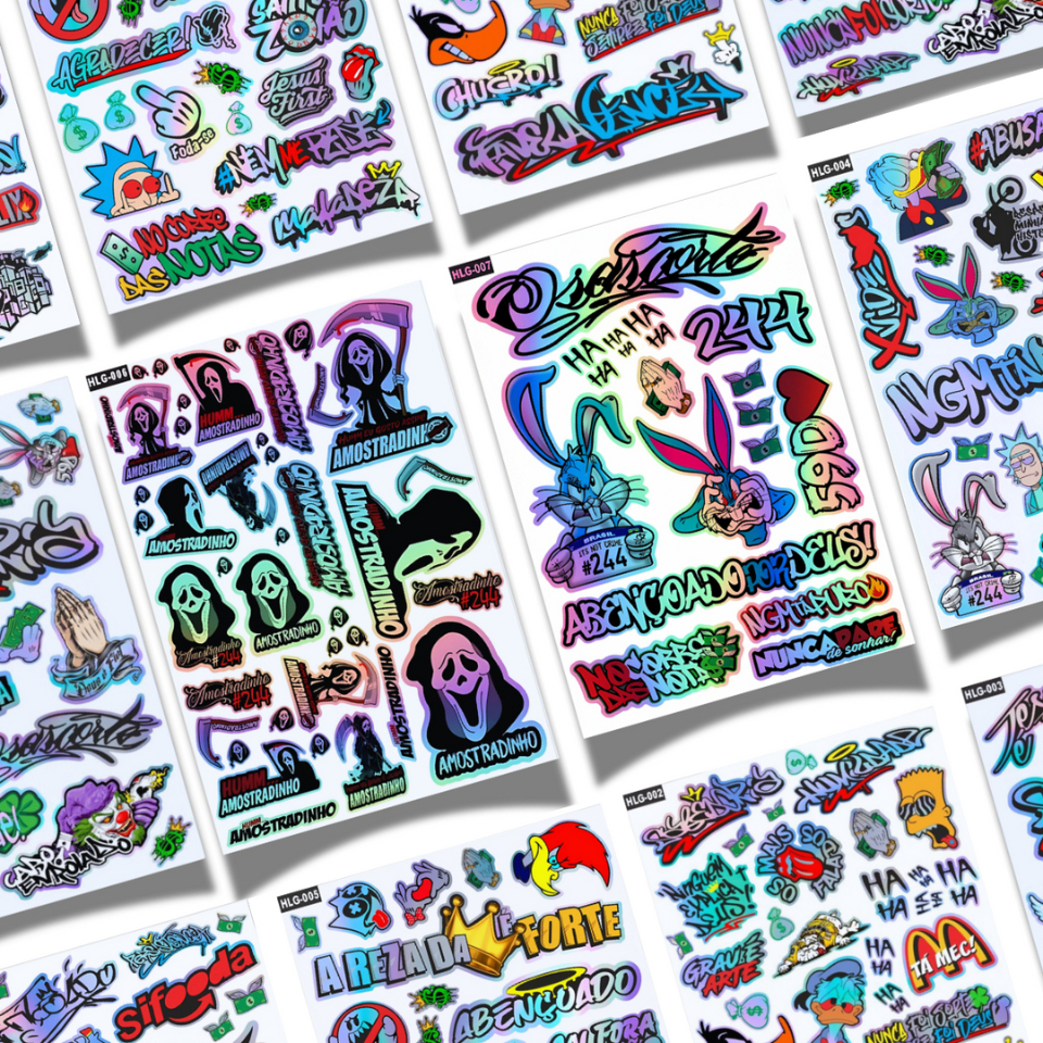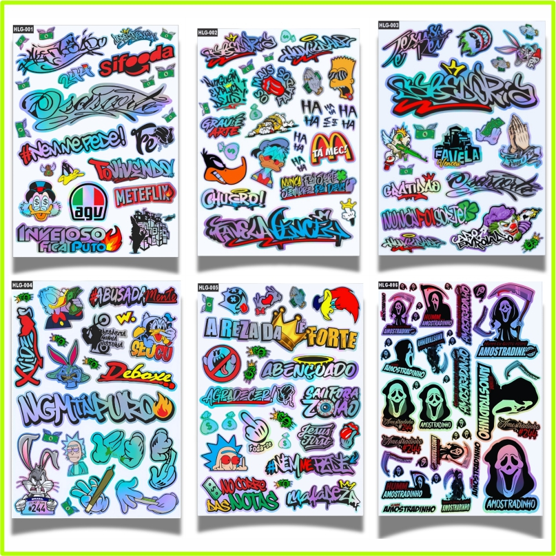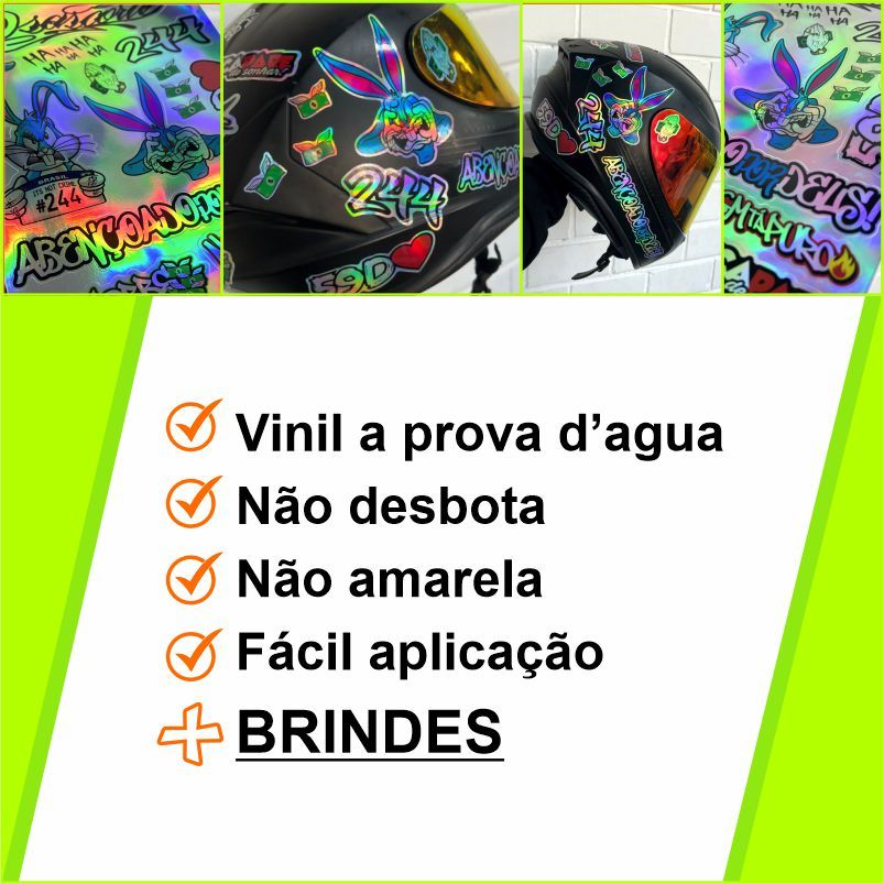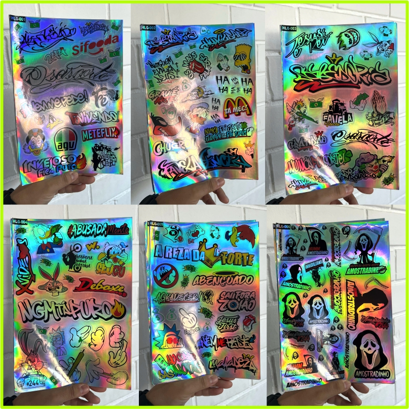 kit 18-27 Adesivos Diversos - Holografico Aprova D'agua - 244 Osascorte Moto Carro Capacete Bike BRA