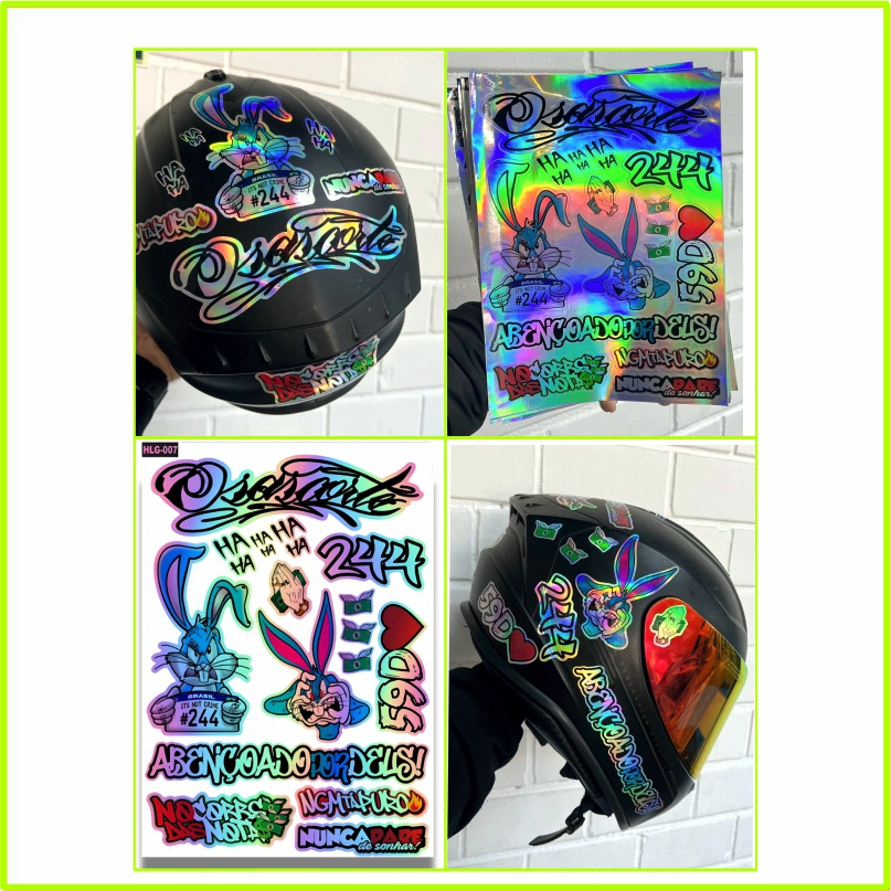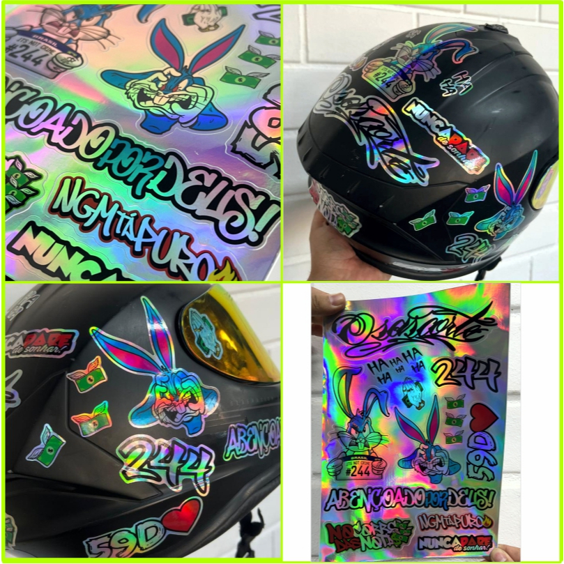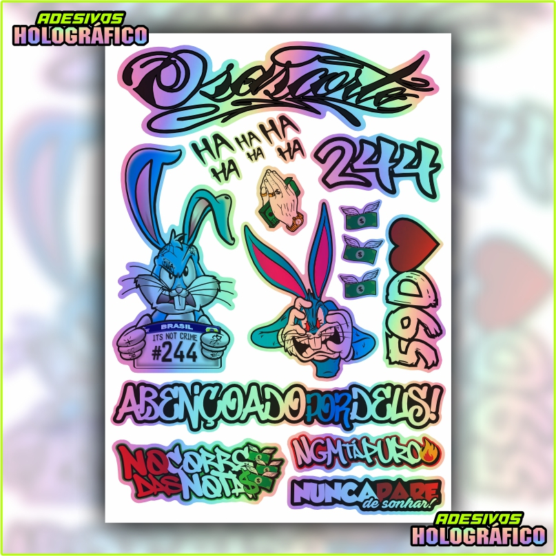 Cartela 16 Adesivos Holográfico 244 Grau Frases Pernalonga 59D Osascorte Prova D'Água + FRETE GRATIS