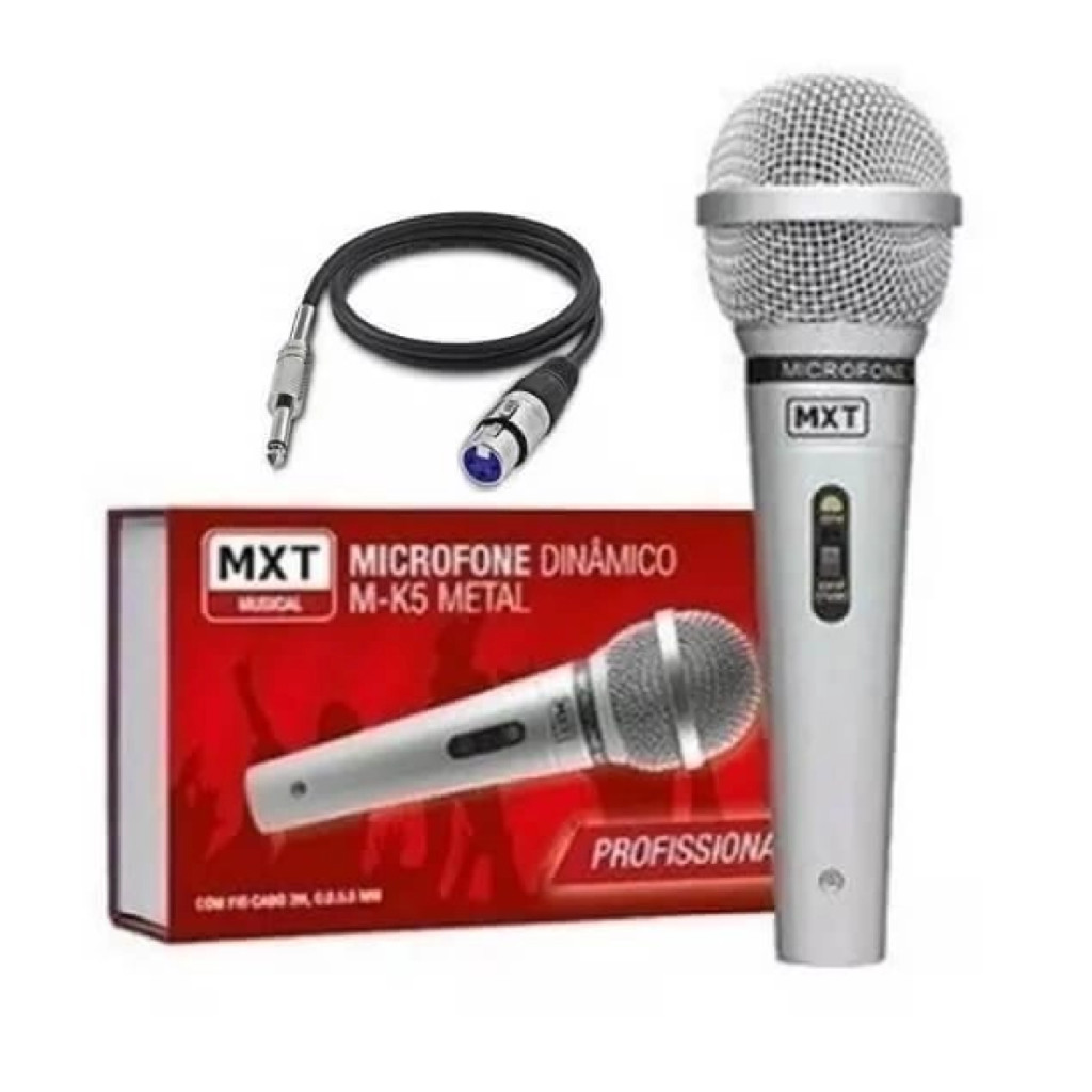 Microfone Dinâmico De Metal MXT M-K5 Prato Cabo 3m