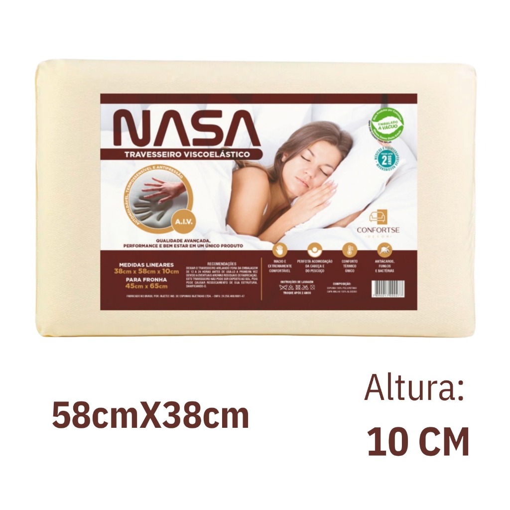 Kit Com 2 Travesseiro Nasa Original Grande Viscoélastico Antialérgico Macio Alto 13 CM