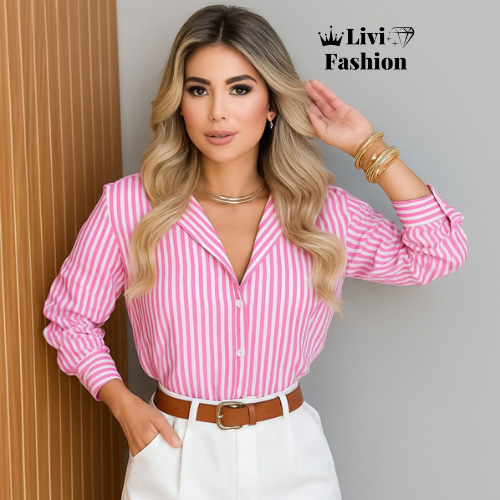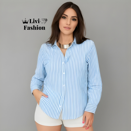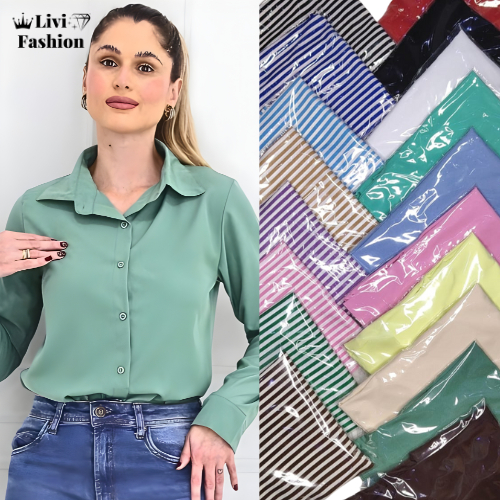Camisa listrada feminina elegante - moda casual em crepe premiumyr