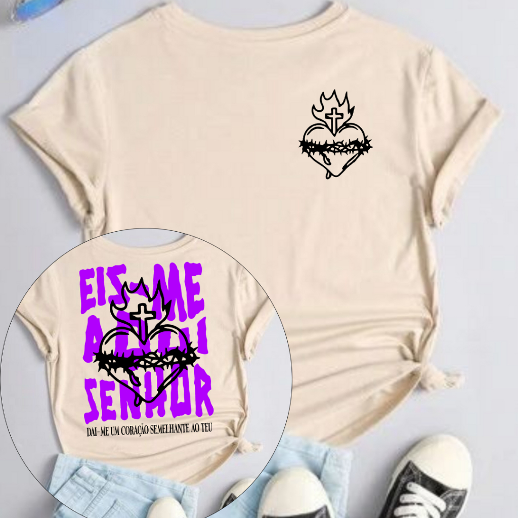 Camiseta Eis-Me Aqui Senhor Frente e Costas Cristã Jesus T-Shirt Algodão Premium 30.1 Envio Rapido