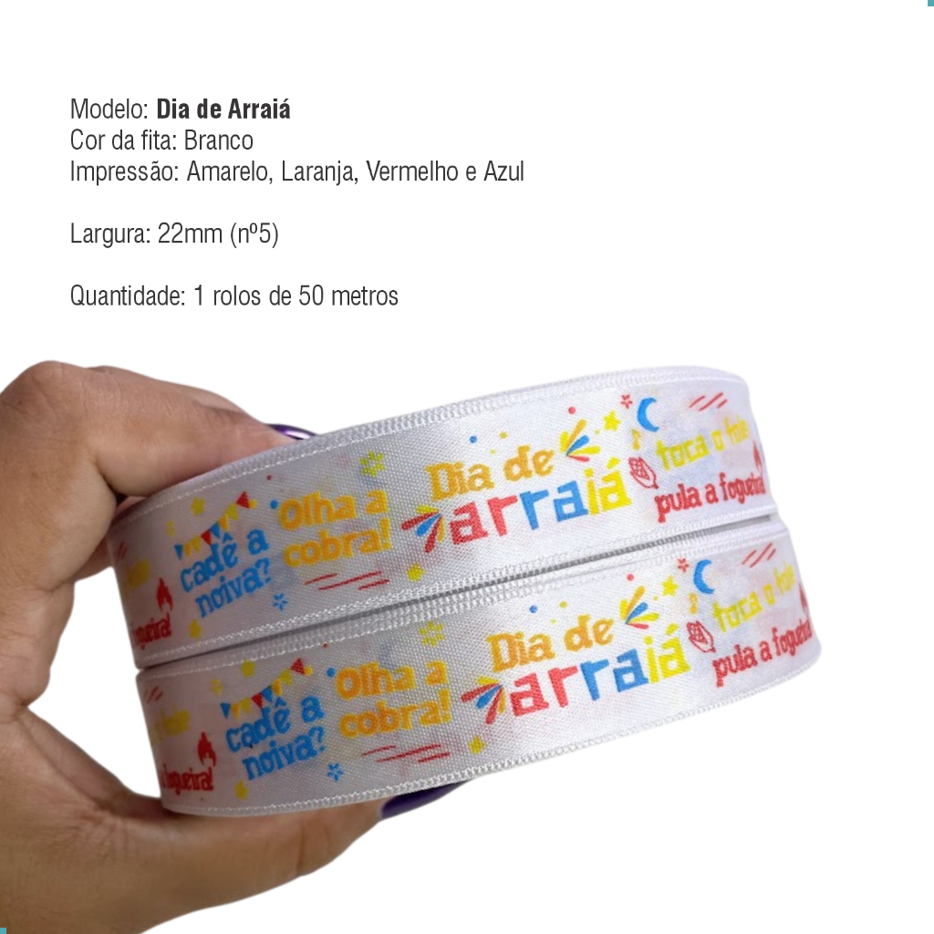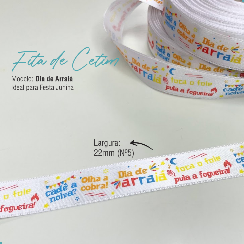 Fita Cetim Estampada em Tinta Festa Junina - 50 Metros - 22mm