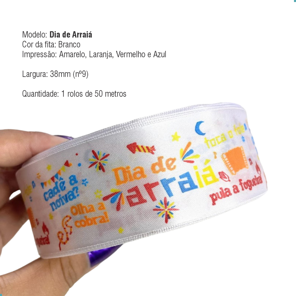 Fita Cetim Personalizada Festa Junina - 50 Metros - 38mm