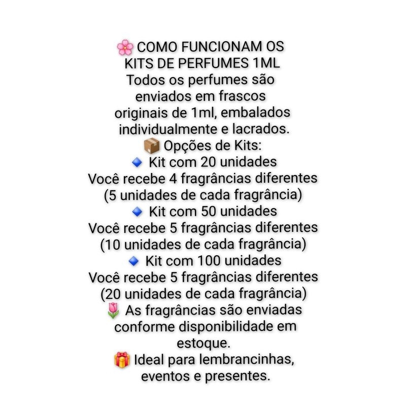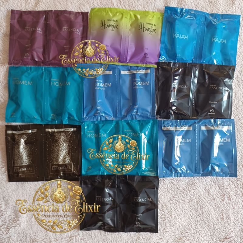 Kit 20, 50, 100 Perfumes Natura 1ml, Flaconete, Feminino ou Masculino, Sachê Lacrado Original