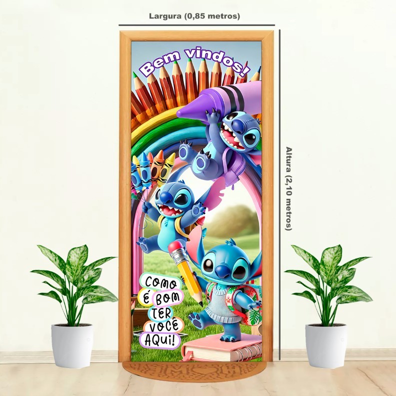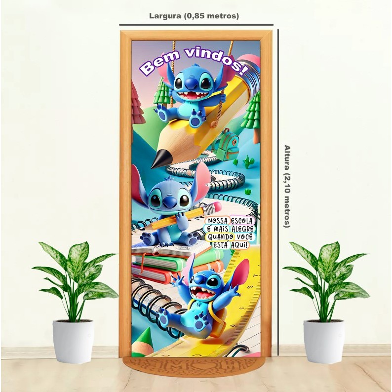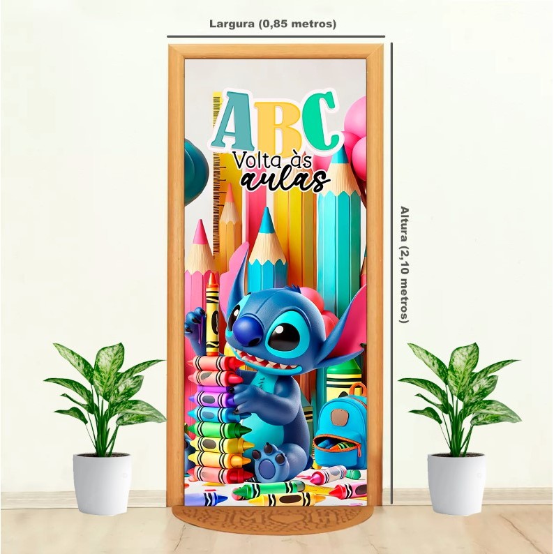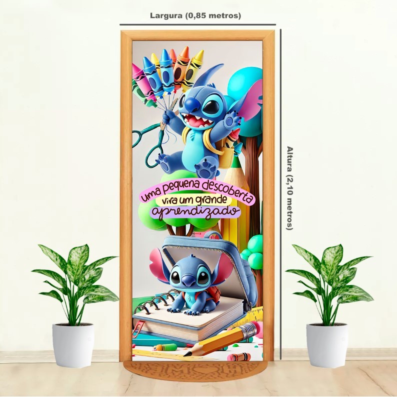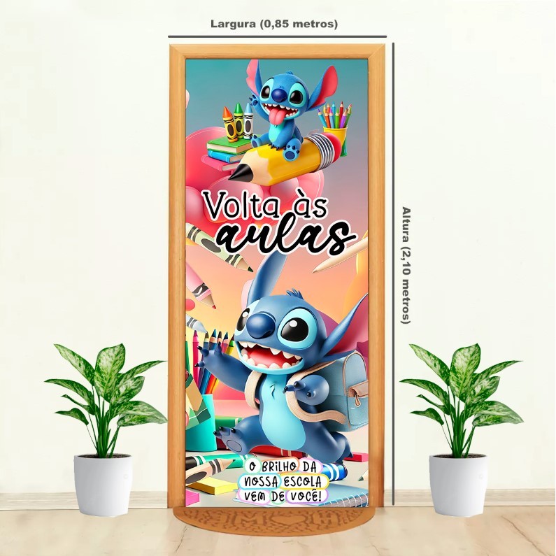 CAPA DE PORTA VOLTA AS AULAS LILO E STICH PARA ESCOLA PAINEL VESTE PORTA DECORATIVO EM TECIDO