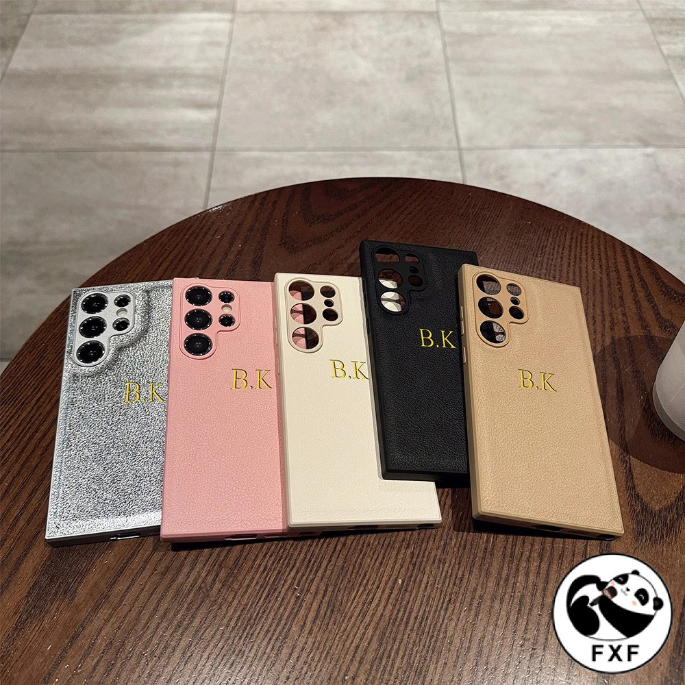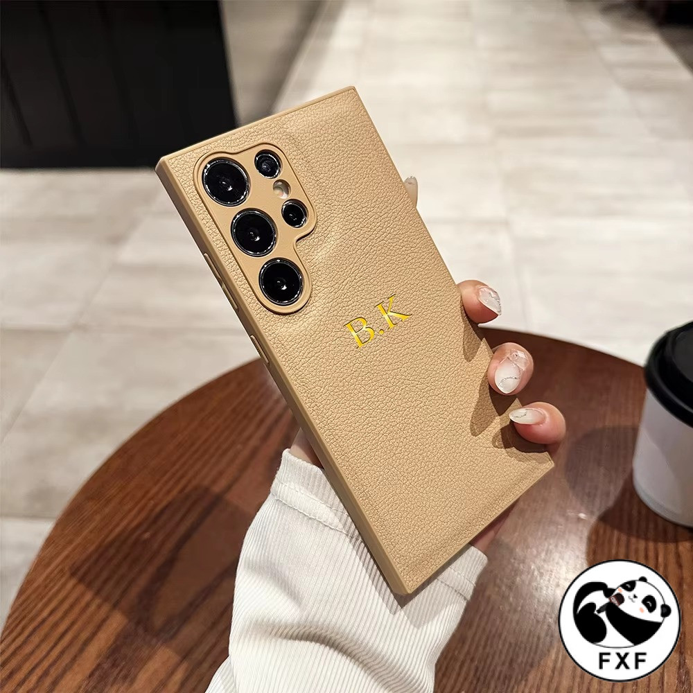 Luxo Personalizado Iniciais Nome Dourado Caso De Couro Do Plutônio Para Samsung Galaxy S25 S24 S23 S22 S21 Série