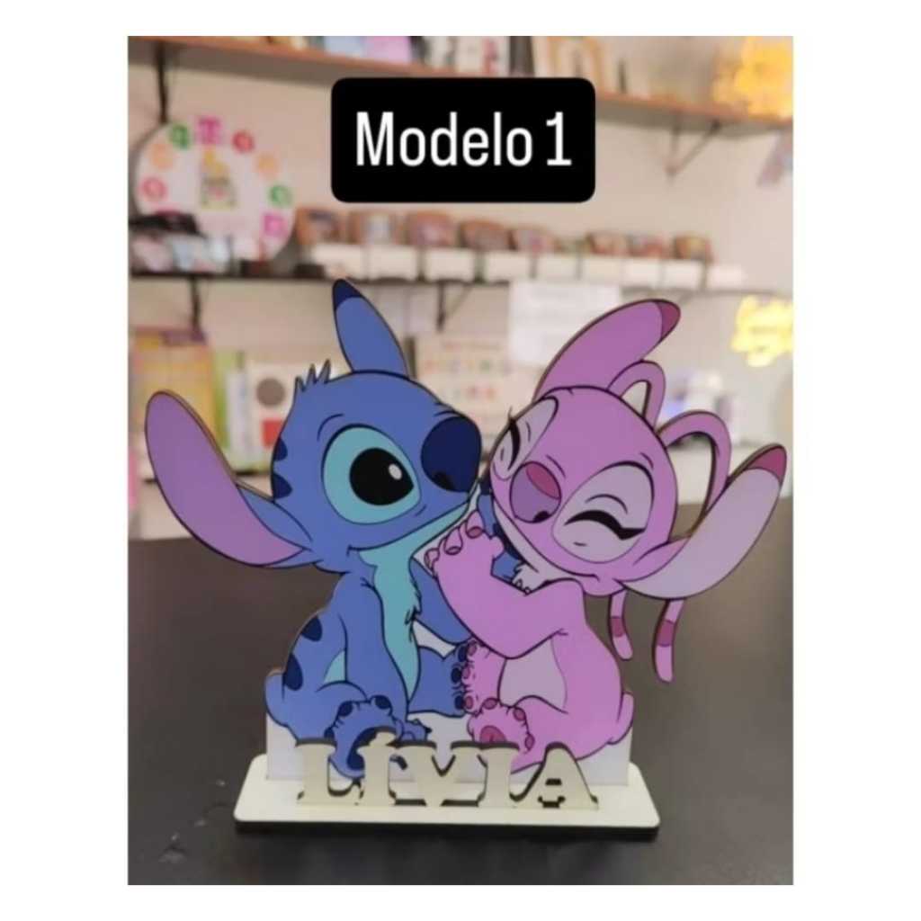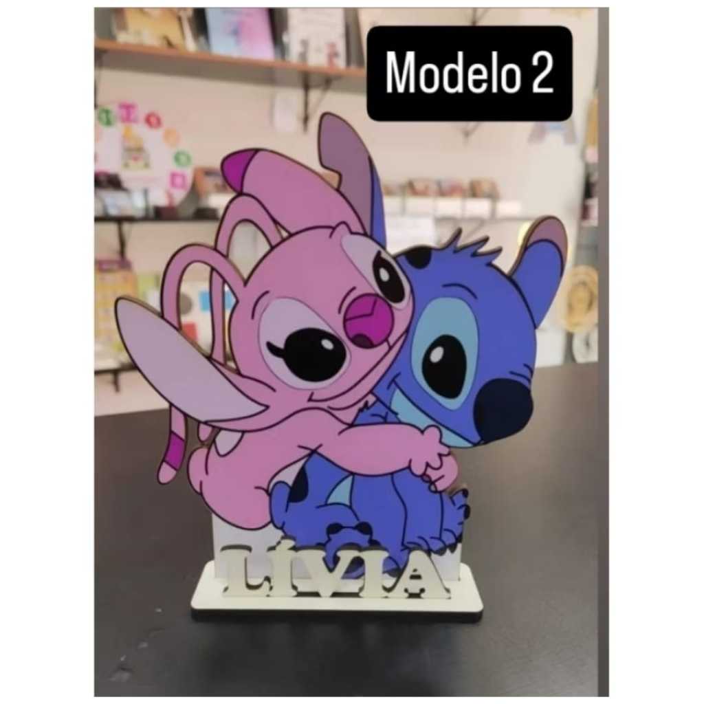 Lembrancinha Centro de mesa tema Stitch e Angel Personalizado com nome MDF