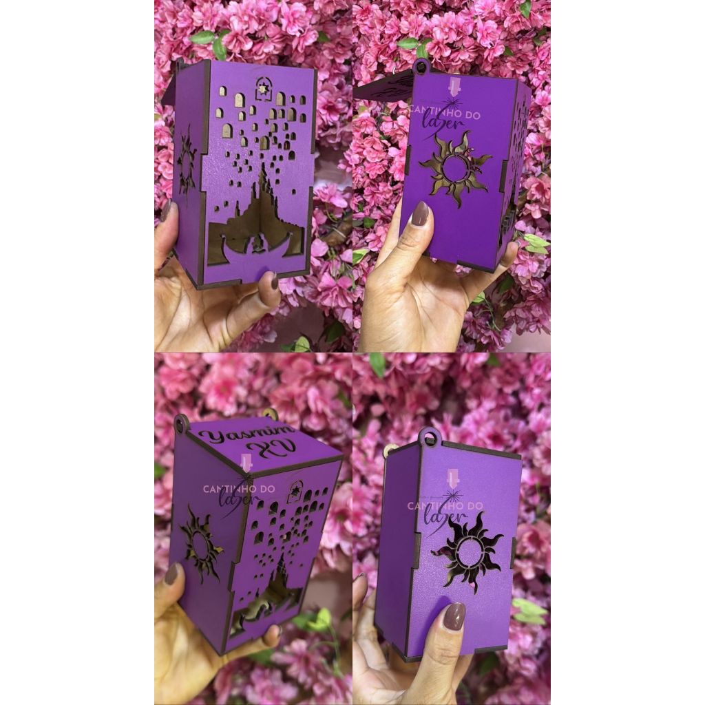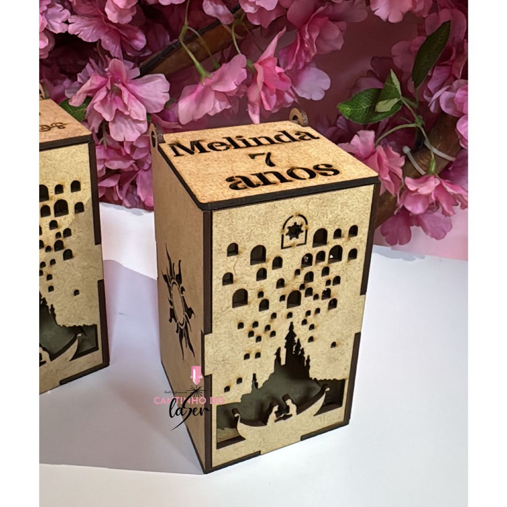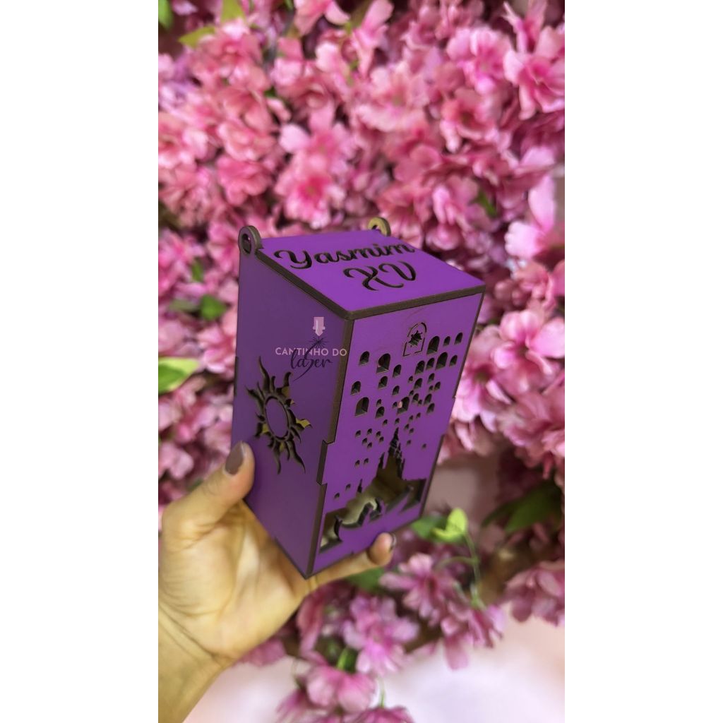 Caixa luminária Tema Rapunzel Enrolados Centro de Mesa personalizado com nome tamanho 12x7x7