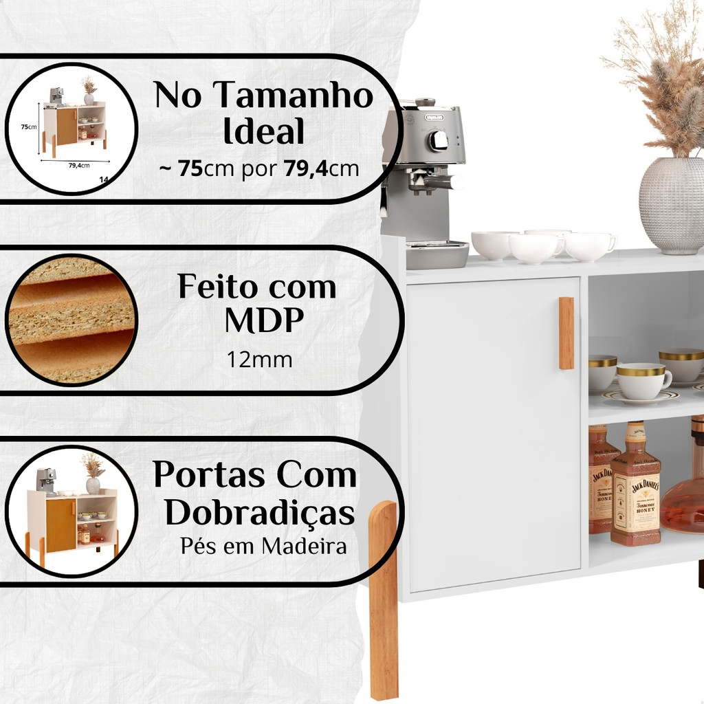 PROMOÇÃO Aparador Buffet Multiuso Retrô Cantinho do Café Luxor com Porta Barzinho Pés em Madeira 1 P